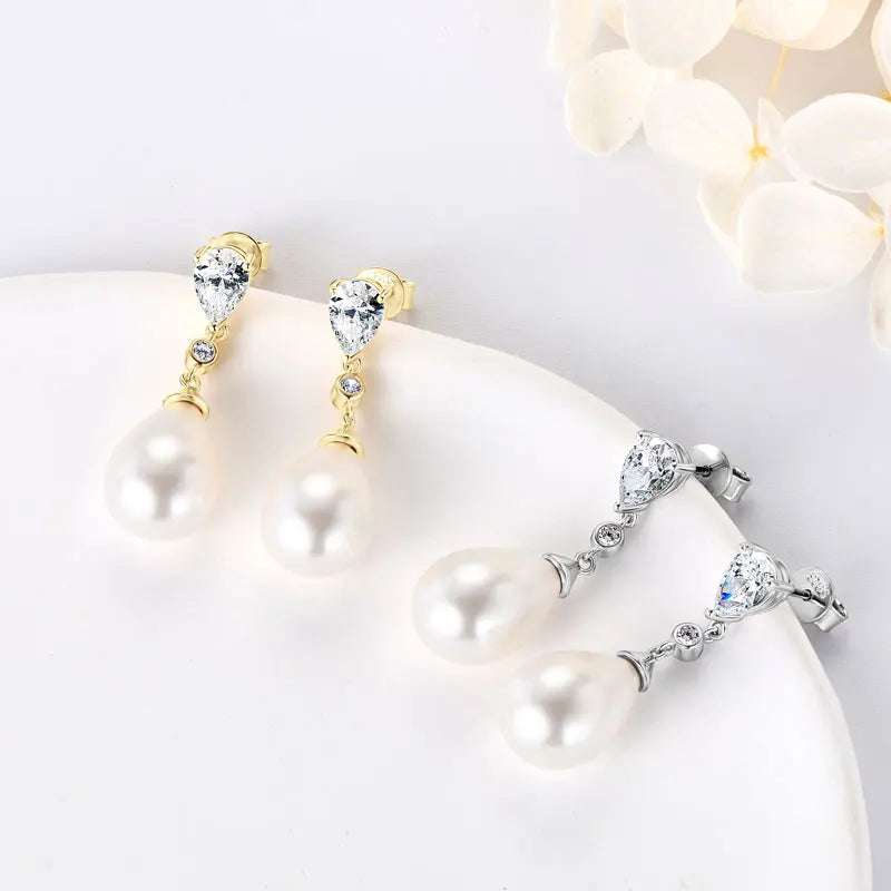 Anziw Elegant 925 Sterling Silver Earrings 13mm White Shell Pearl Drop Stud Earrings Engagement Wedding Fine Jewelry for Women