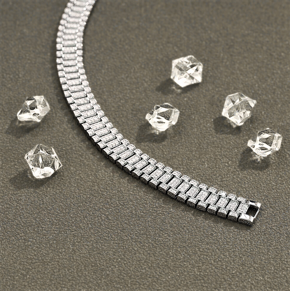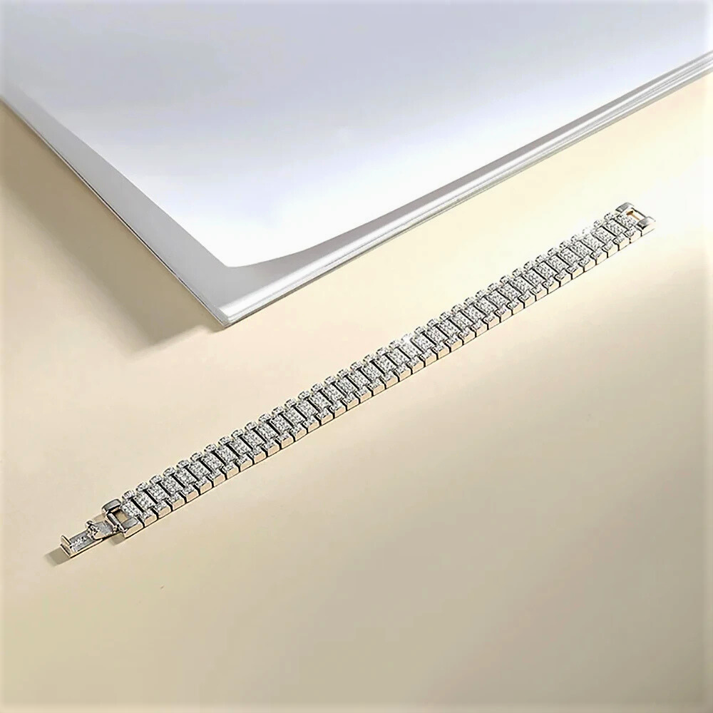 Lineare, deciso, impeccabilmente equilibrato. Questo bracciale nasce dall’incontro tra l’ingegneria dell’alta orologeria e la raffinatezza della gioielleria contemporanea. Le sue forme richiamano con immediatezza i bracciali iconici degli orologi di lusso, reinterpretati con uno sguardo essenziale e moderno. Il risultato è un gioiello dalla presenza sicura, capace di trasmettere precisione, ordine e carattere, senza mai risultare eccessivo. La luce non invade, accompagna. Ogni riflesso è studiato, ogni dettaglio contribuisce a un’estetica sobria e fortemente identitaria, pensata per chi riconosce il valore delle cose ben progettate.