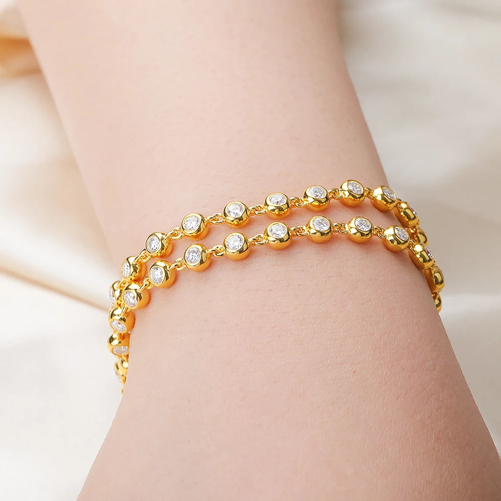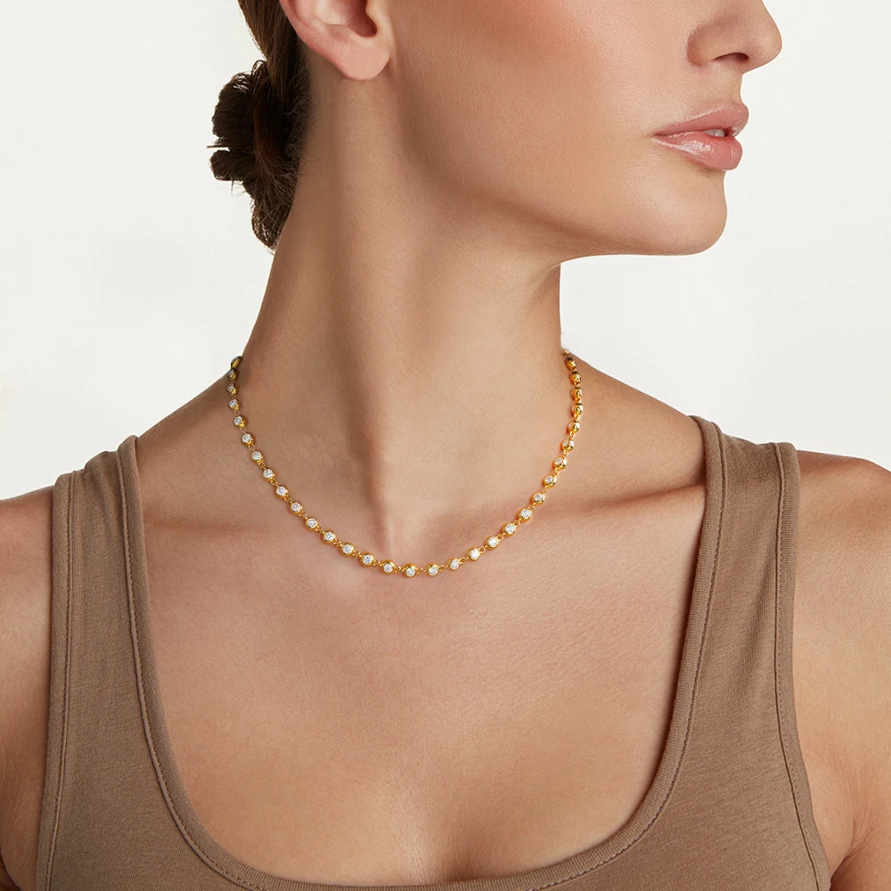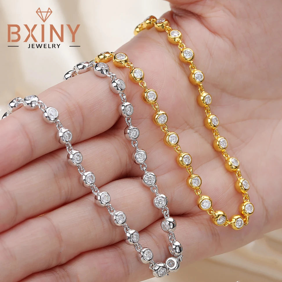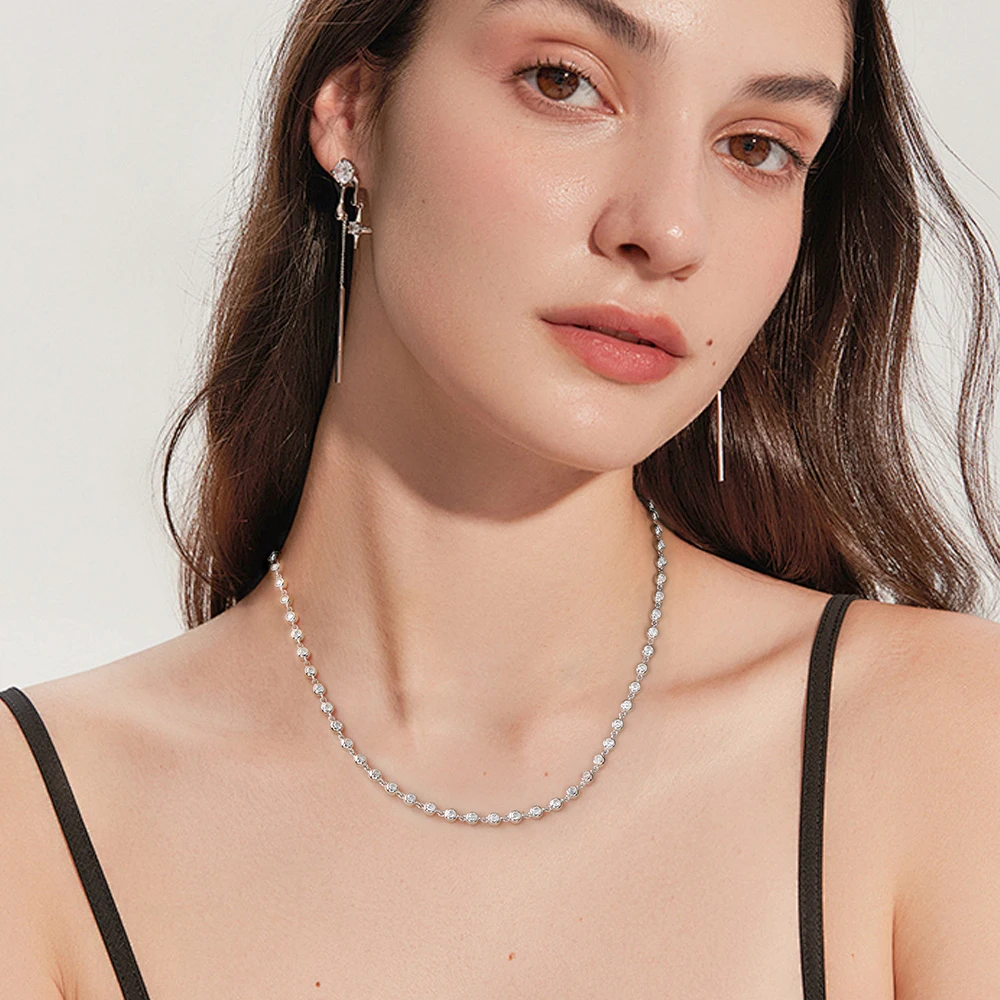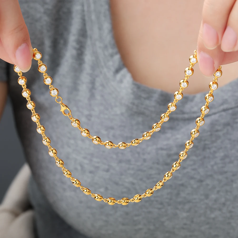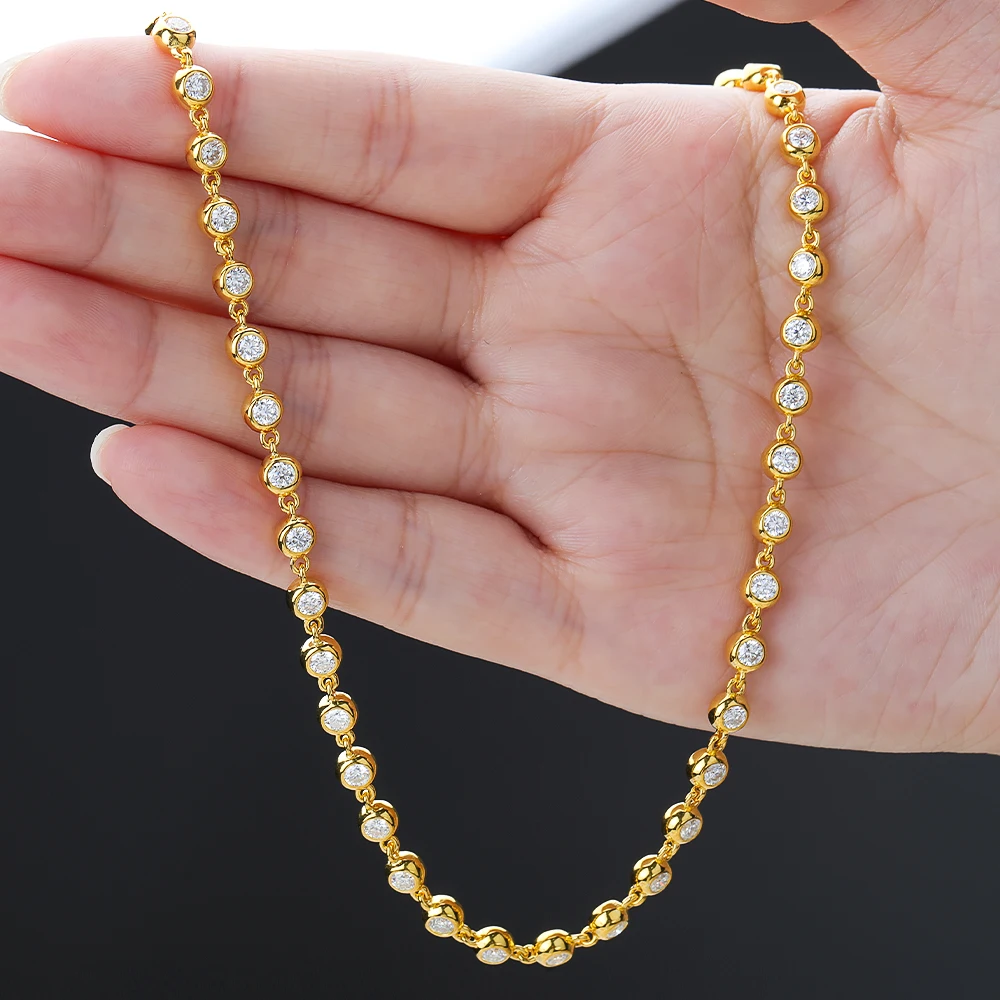 BXINY 3mm Bubble Moissanite Tennis Necklace S925 Silver for Women Bezel Set Diamond Neck Chain Party Jewelry Gifts GRA Certified