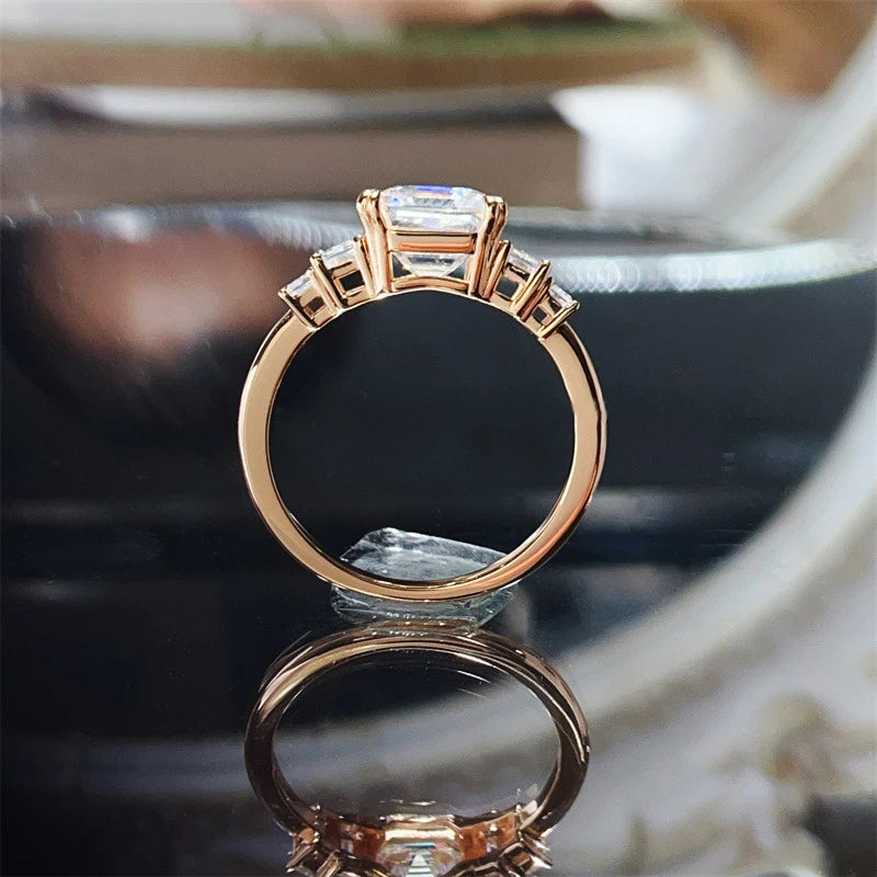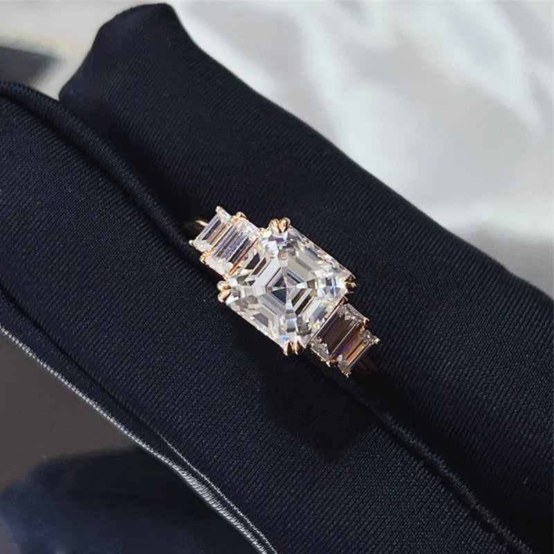 BXINY 4CT Asscher Cut All Moissanite Ring 100% S925 Silver Baguette Diamond Wedding Band for Women Gift Jewelry With Certificatelry