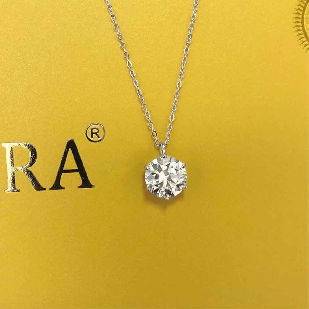 La collana è disponibile con moissaniti da 0,50, 1, 2, 3 e 5 ct, per adattarsi a gusti e stili differenti. La montatura semplice a sei punte realizzata a mano in Argento Sterling 925, oltre a garantire massima sicurezza, mantiene il ciondolo proporzionato e perfettamente centrato, lasciando che la luce attraversi ogni angolo della gemma e valorizzando il taglio in modo uniforme. Disponibile con tripla placcatura in oro bianco e rodiatura finale, oro giallo o oro rosa a 18 ct, ciascuna versione esalta la brillantezza della pietra e si abbina facilmente a qualsiasi stile o outfit, diventando un gioiello iconico da indossare ogni giorno.