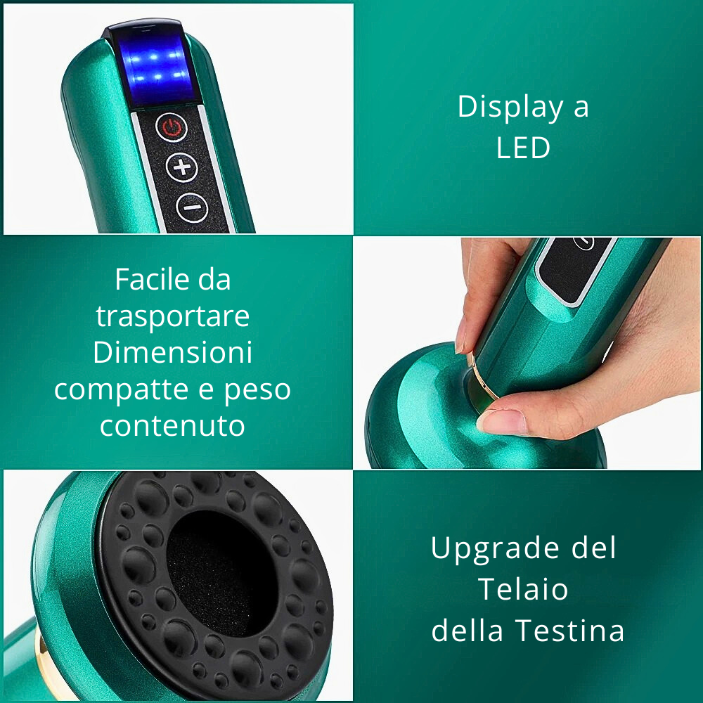 Unendo sapere antico e tecnologia moderna, questo dispositivo 3 in 1 ti accompagna in un rituale quotidiano di cura e rigenerazione. Un gesto consapevole che rimodella, rilassa e valorizza il tuo corpo, trasformando ogni trattamento domestico in un’esperienza di benessere profonda, efficace e autentica.