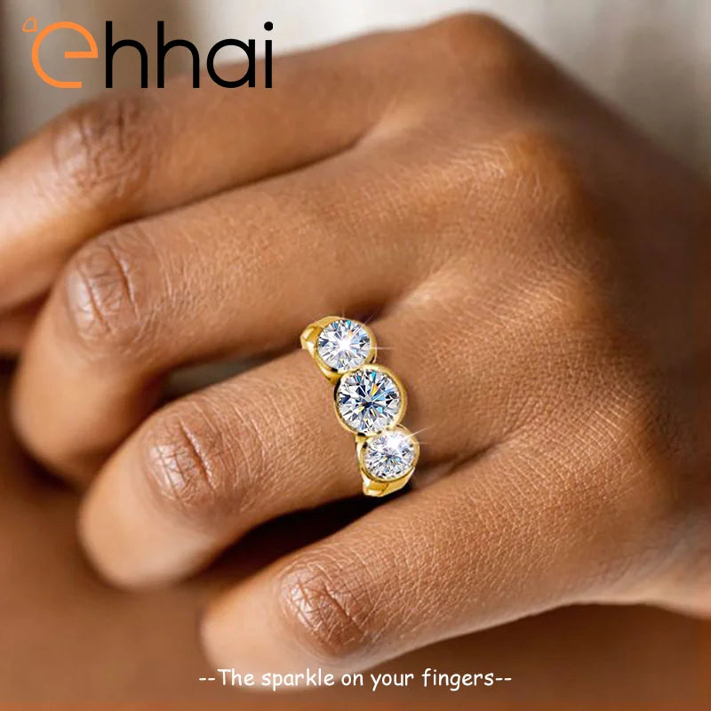 Ehhai GRA Certified 5mm&6.5mm Sparkling Bezel Set Round Moissanite Ring for Women 925 Sterling Silver Wedding Engagement Rings Jewelry Gift Anillos
