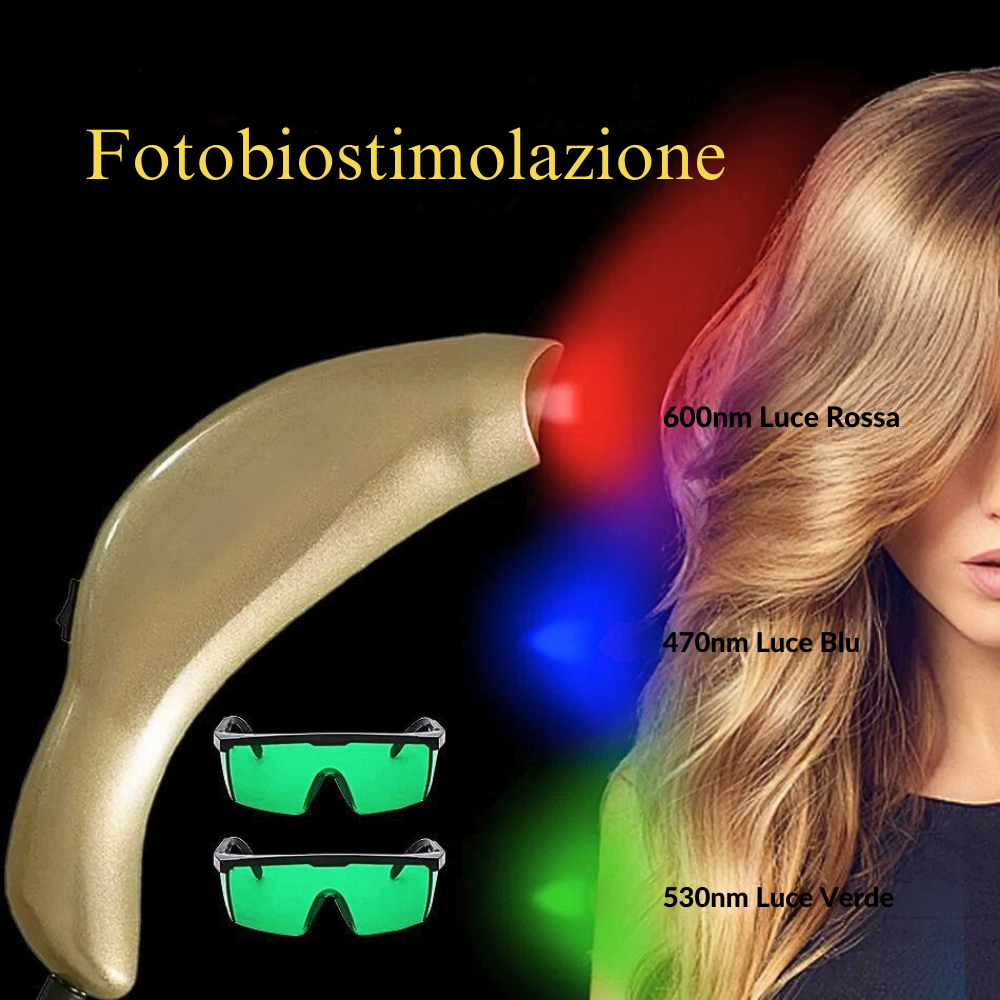 Nel panorama delle tecnologie avanzate per la cura dei capelli, la Fotobiostimolazione a LED fotonici rappresenta un’autentica rivoluzione. Questa innovazione combina scienza e bellezza, offrendo una soluzione non invasiva e altamente efficace per migliorare la salute del cuoio capelluto, ridurre la caduta dei capelli e promuovere la ricrescita. Grazie all'uso di luci LED fotoniche di diverse frequenze, questo dispositivo agisce in profondità, stimolando i follicoli piliferi e migliorando la circolazione sanguigna. È una tecnologia ispirata alla terapia della luce, già utilizzata in campo medico e dermatologico, ora applicata al mondo del beauty care. Scopri come i benefici combinati della luce rossa, verde e blu possono trasformare la tua routine di bellezza in un trattamento professionale e personalizzato, direttamente a casa tua.