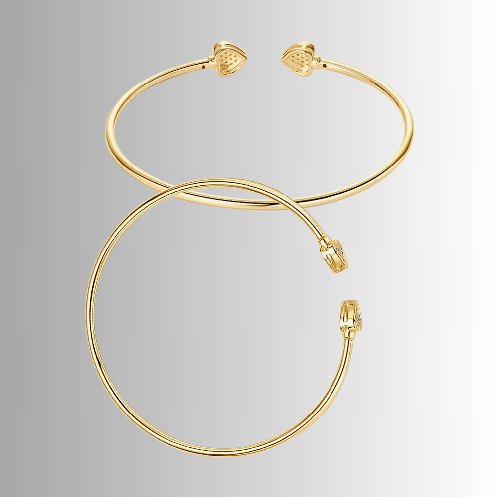 Il profilo liscio si conclude con due cuori contrapposti, realizzati con pavé di micro moissaniti. Una proposta pulita e lineare che unisce valore simbolico e brillantezza misurata, ideale per chi cerca un dettaglio significativo ma sobrio. Disponibile nei diametri 55 mm e 59 mm.