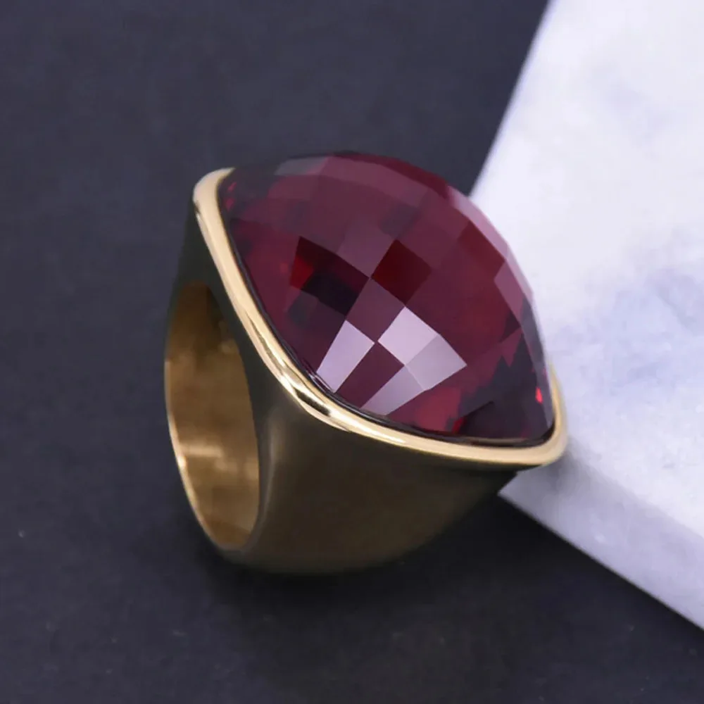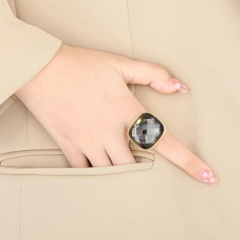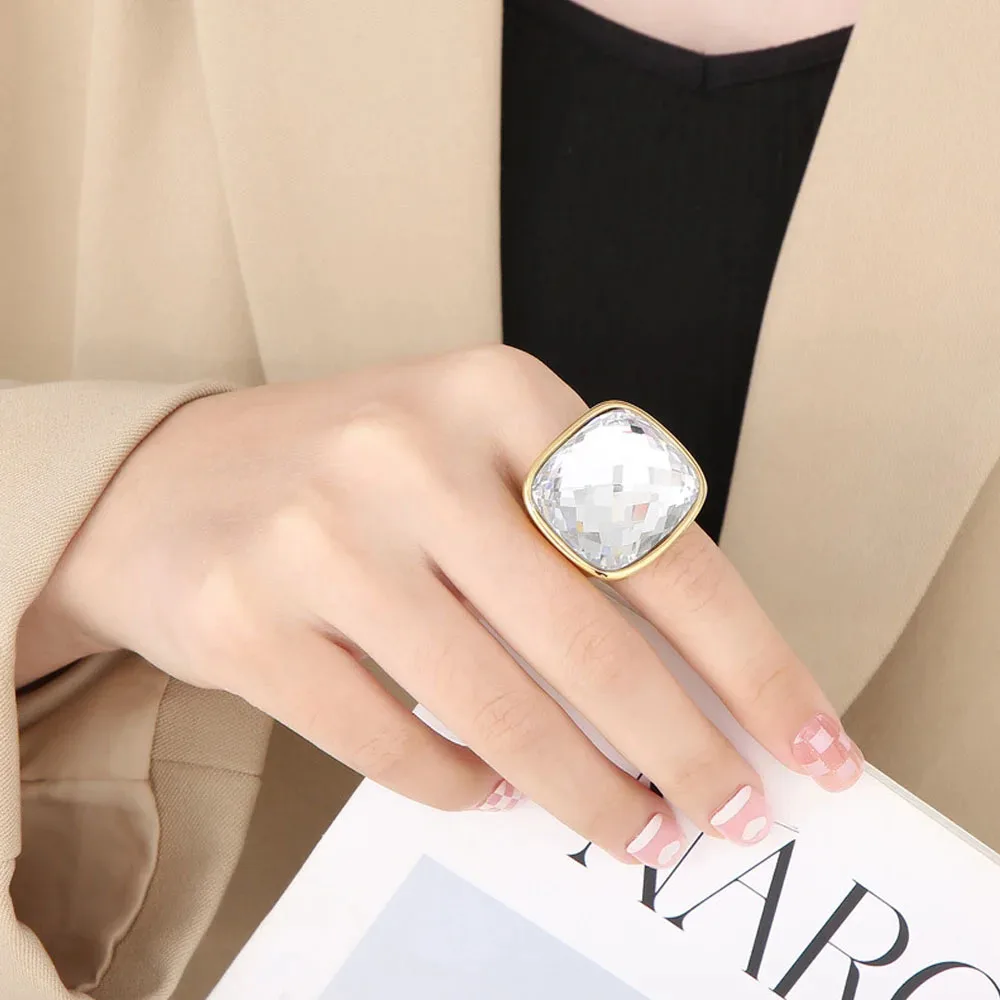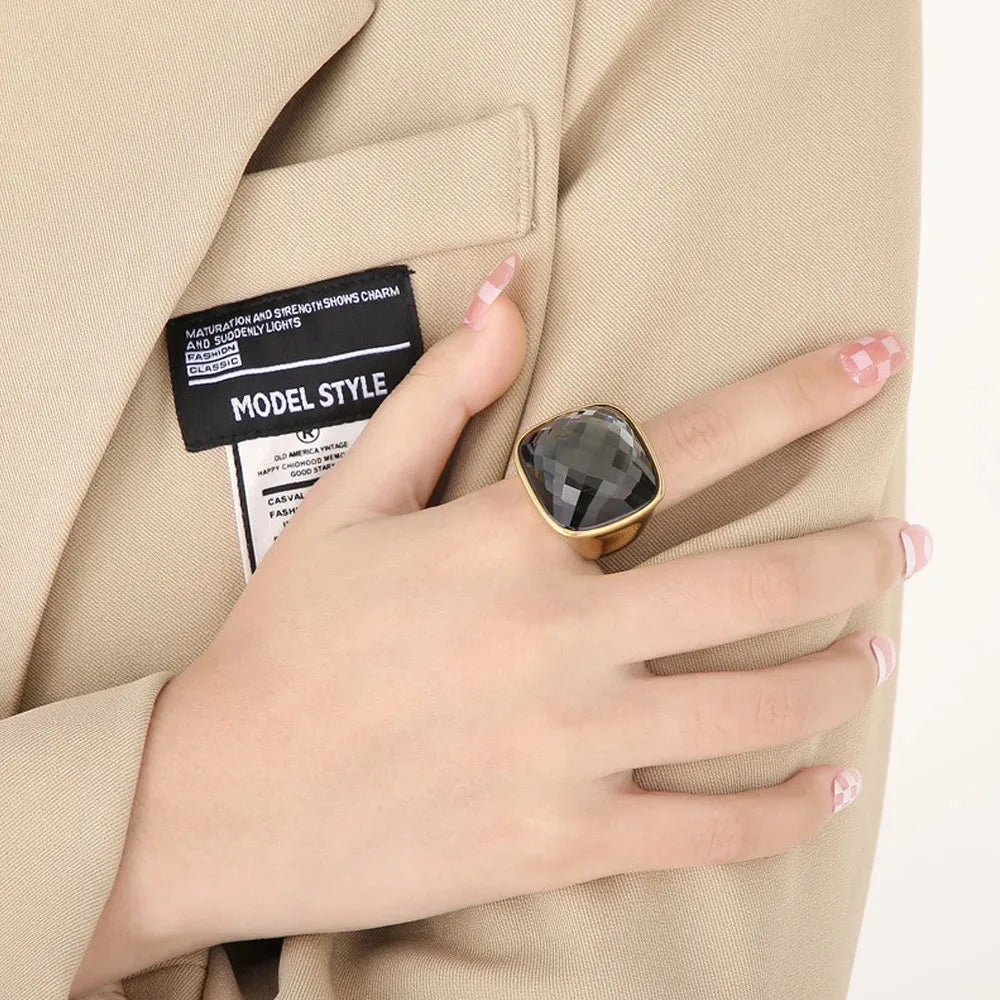 Niche Exaggerated Modern Large Gemstone Women's Ring Titanium Steel Plated 18k Gold Jewelry