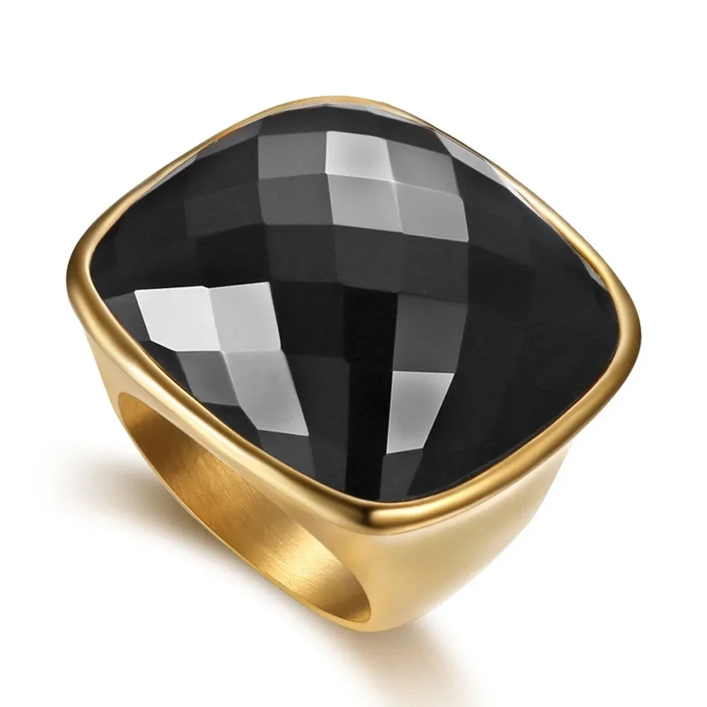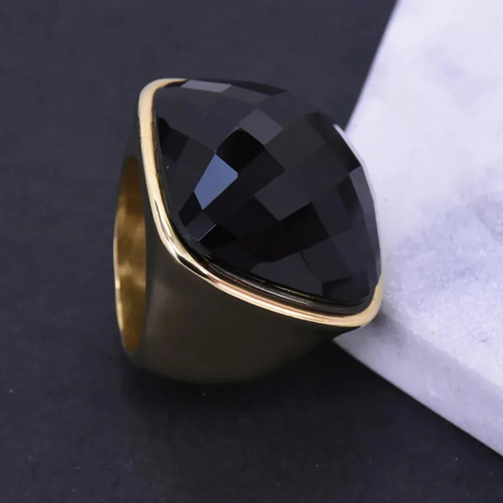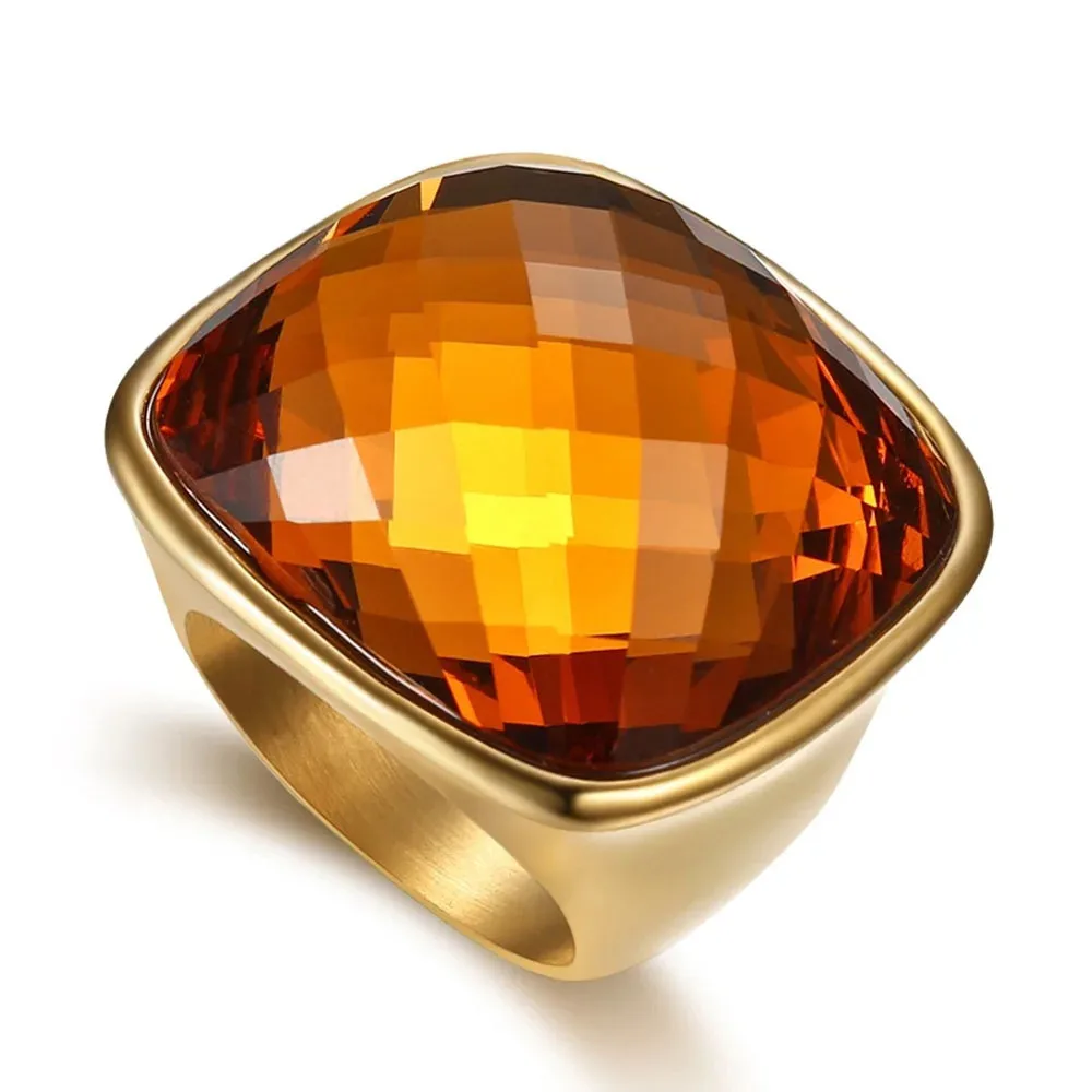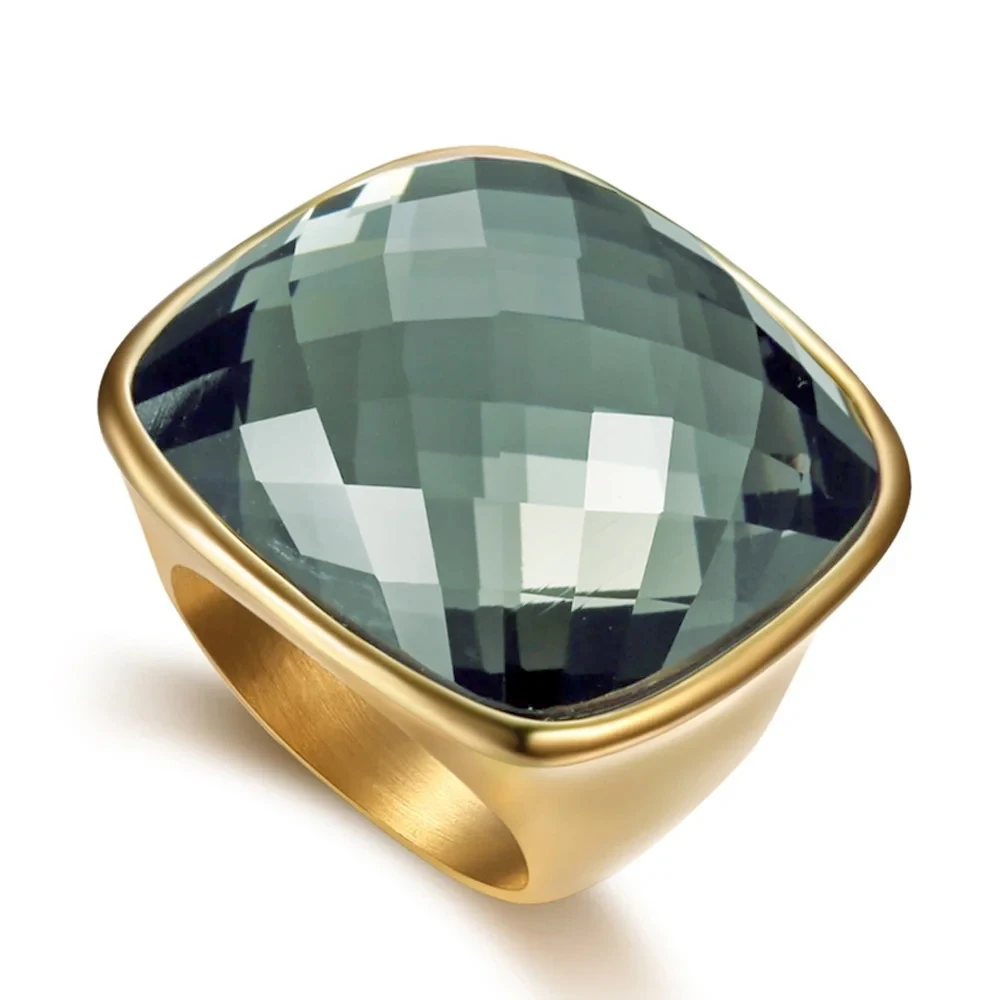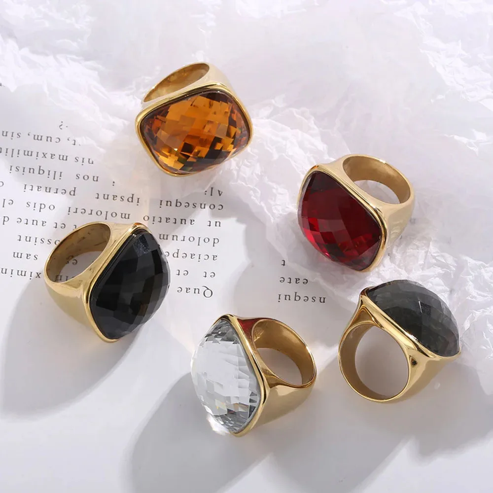 Niche Exaggerated Modern Large Gemstone Women's Ring Titanium Steel Plated 18k Gold Jewelry