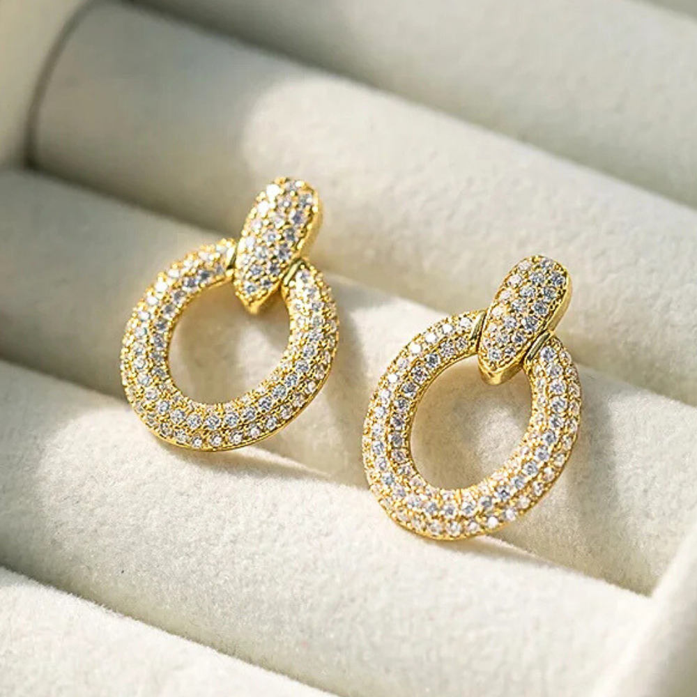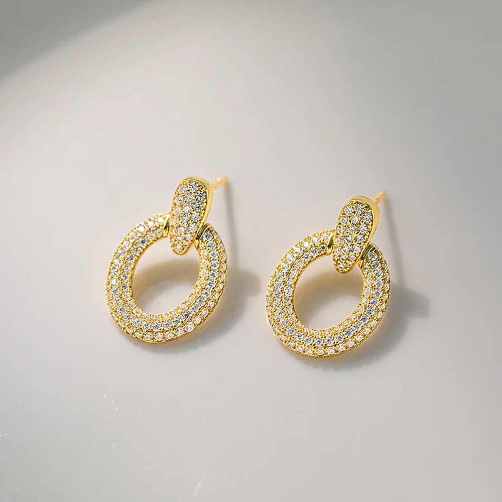 Con una lunghezza di circa 21,2 mm e una larghezza di circa 14,4 mm, questi orecchini creano una presenza luminosa importante ma armoniosa, pensata per donne che amano distinguersi con eleganza e sicurezza.