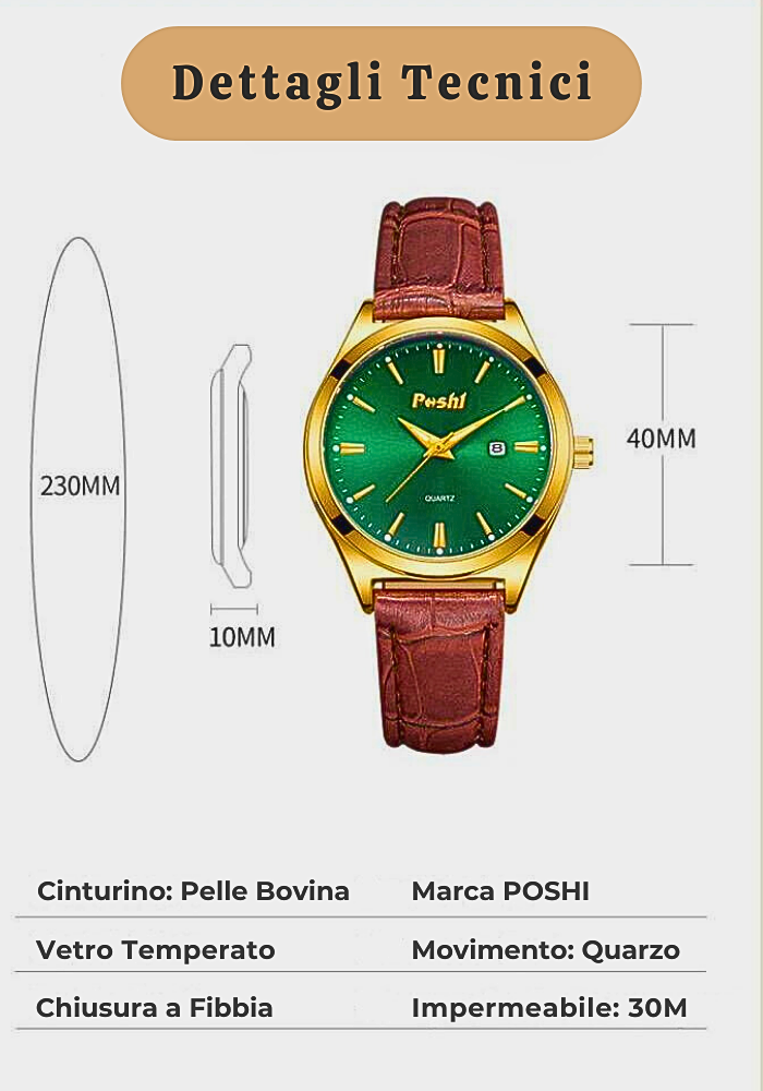 Elevate your style with the POSHI watch, where simplicity meets refinement for a unique and unmistakable look. Choose your favorite dial and let yourself be conquered by the timeless beauty of this luxury watch , capable of enhancing the Natural Elegance of the woman who wears it .
