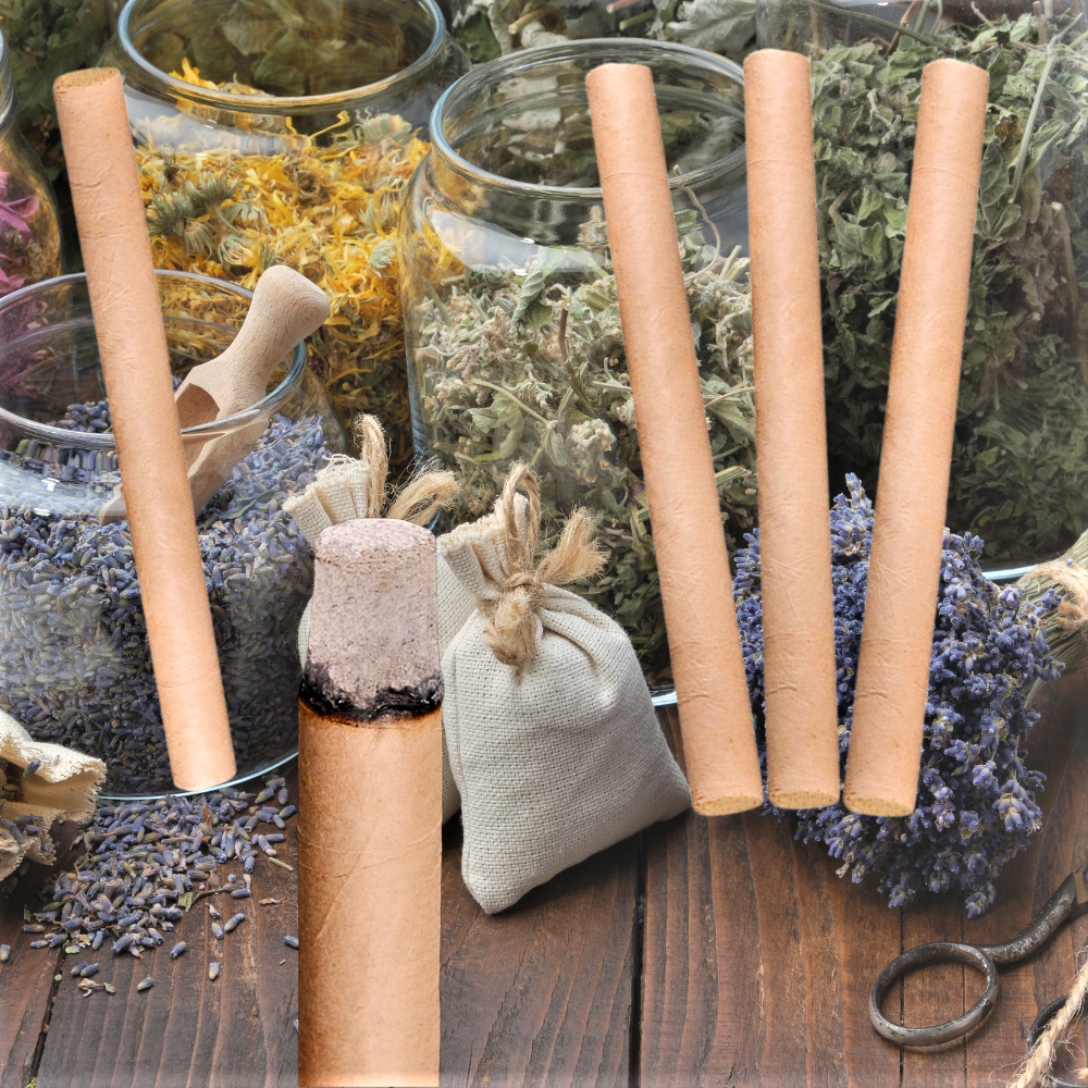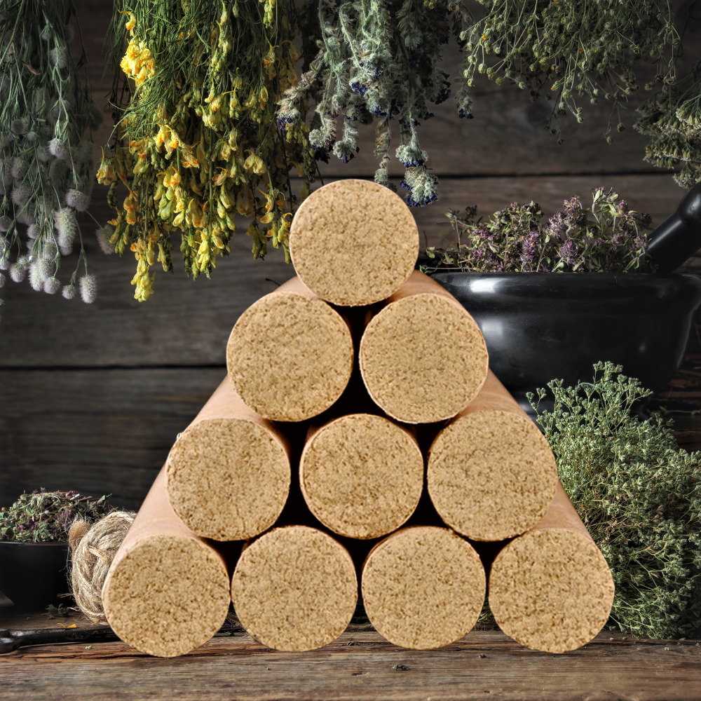 La polvere di artemisia viene combinata con queste essenze naturali e avvolta a mano in carta di riso per creare le candele di moxa. La lavorazione artigianale garantisce una combustione uniforme e un rilascio costante delle proprietà terapeutiche.