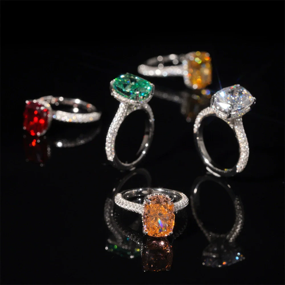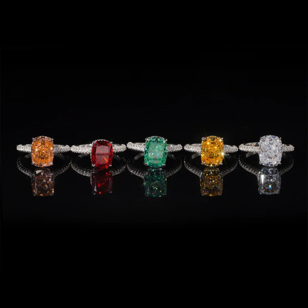 Wong Rain 925 Sterling Silver Crushed Ice Cut 9*12 MM Lab Sapphire Paraiba Citrine Morganite Gems Engagement Rings Fine Jewelry