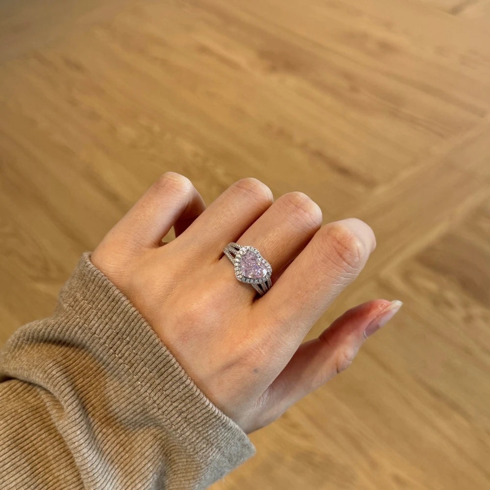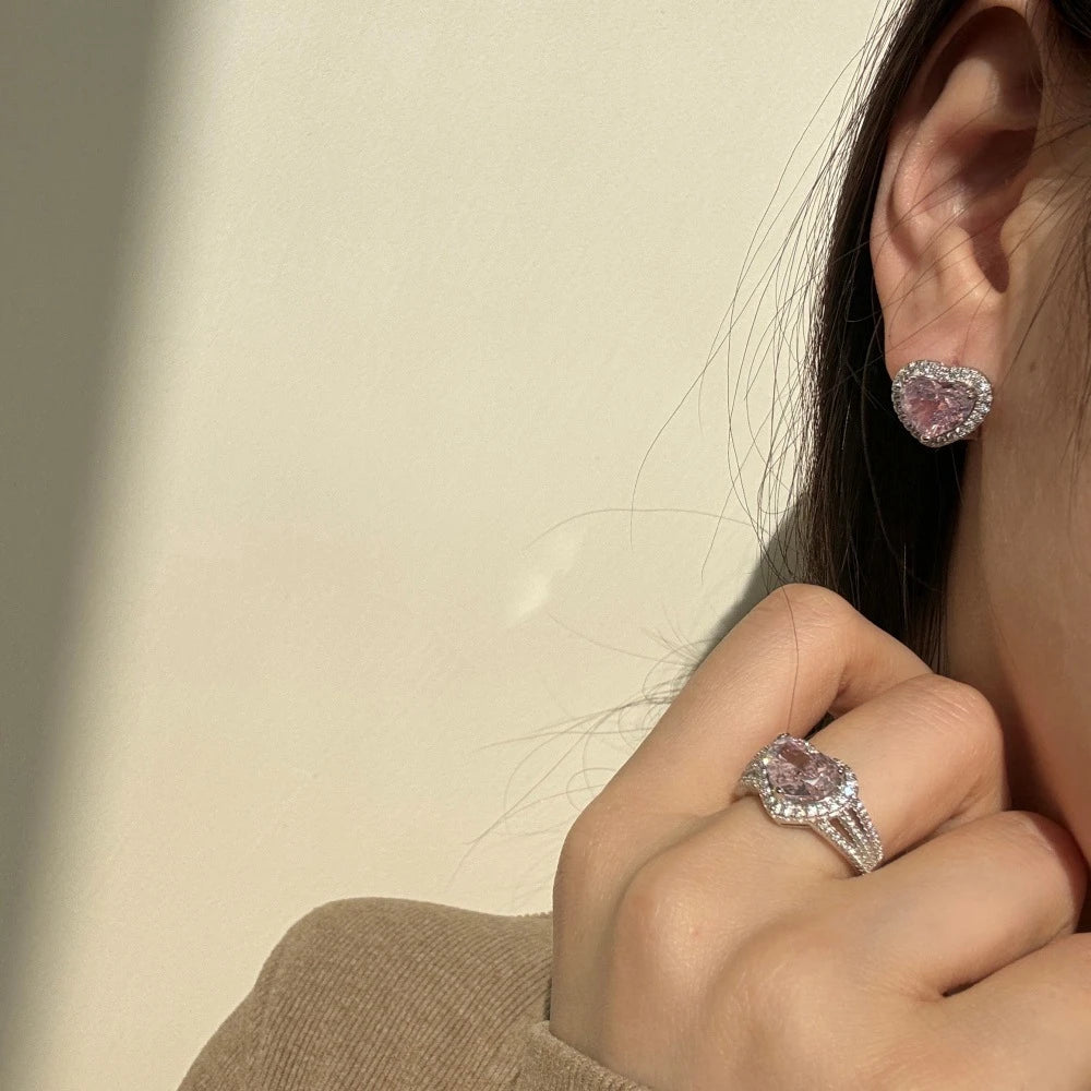 Wong Rain 925 Sterling Silver Heart Cut 8*10MM Lab Sapphire High Carbon Diamond Gems Pendant/Necklace/Earrings/Rings Jewelry Set