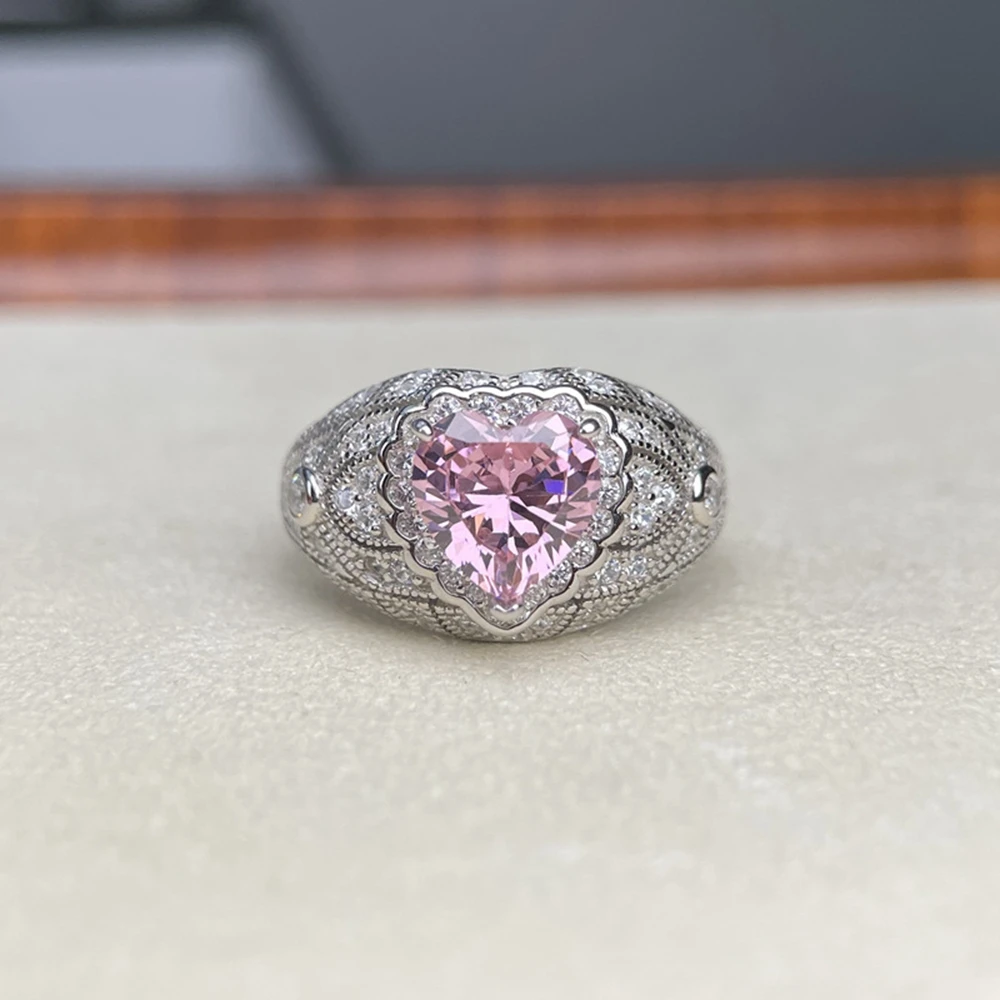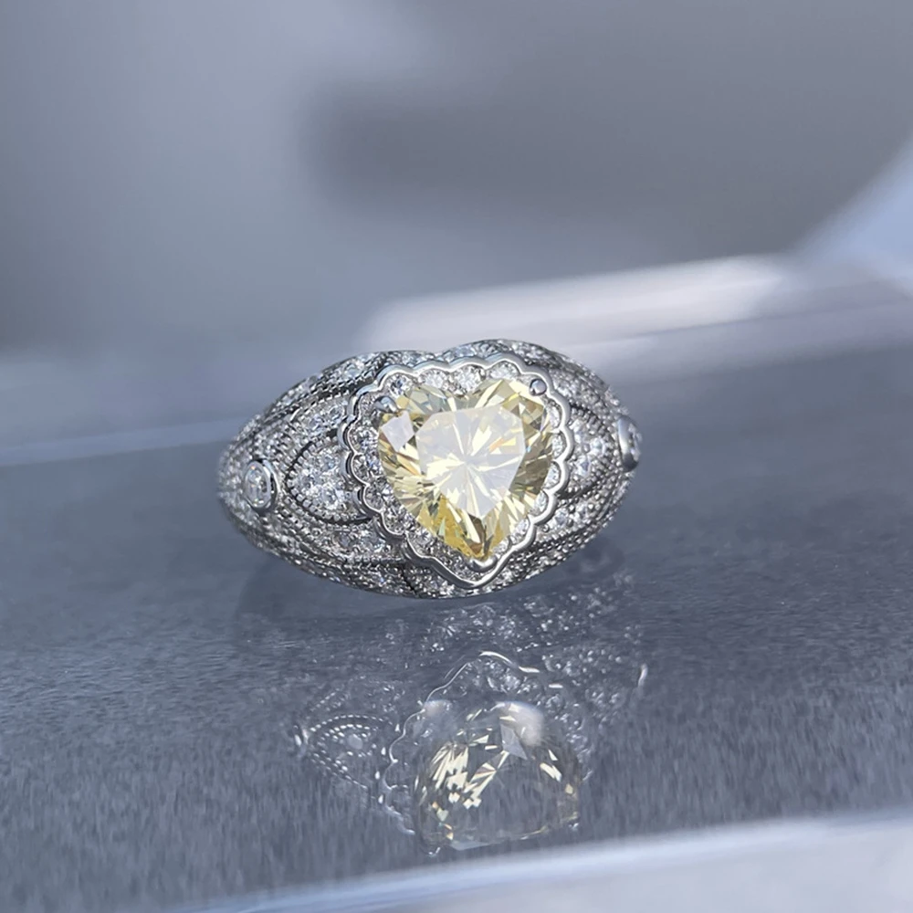 Wong Rain 925 Sterling Silver Heart Cut 8 MM Citrine Sapphire High Carbon Diamond Ring for Women Fine Jewelry Anniversary Gifts