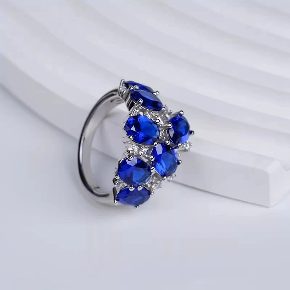 Wong Rain 925 Sterling Silver Oval Cut 5*7.2 MM Sapphire High Carbon Diamond Gems Ring for Women Fine Jewelry Anniversary Gifts