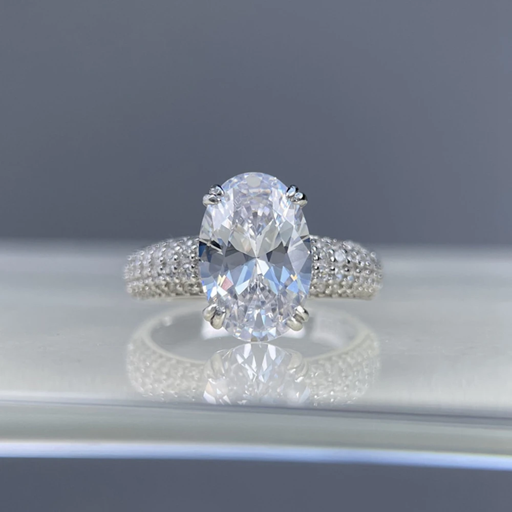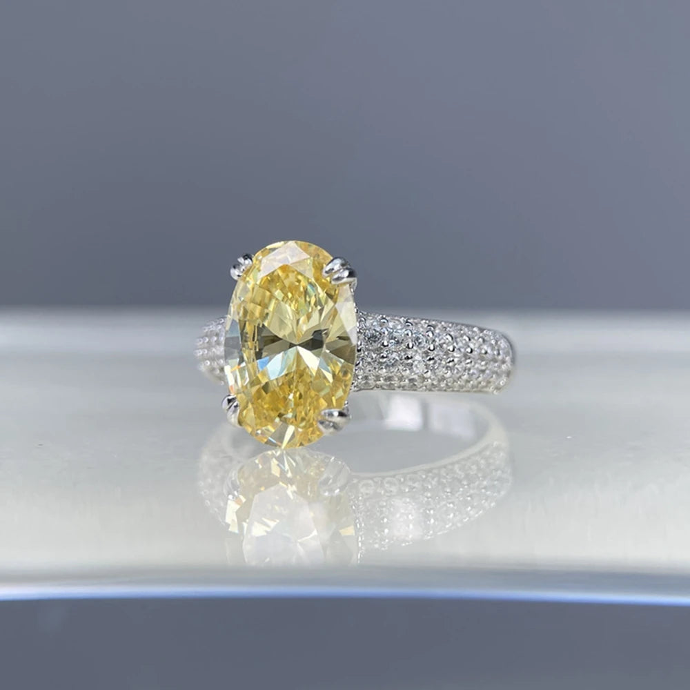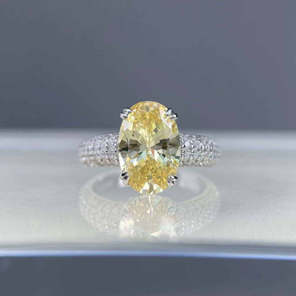 Wong Rain Solid 925 Sterling Silver Oval Cut 8*12 MM Lab Sapphire Citrine High Carbon Diamond Gem Ring for Women Wedding Engagement Fine Jewelry Gifts