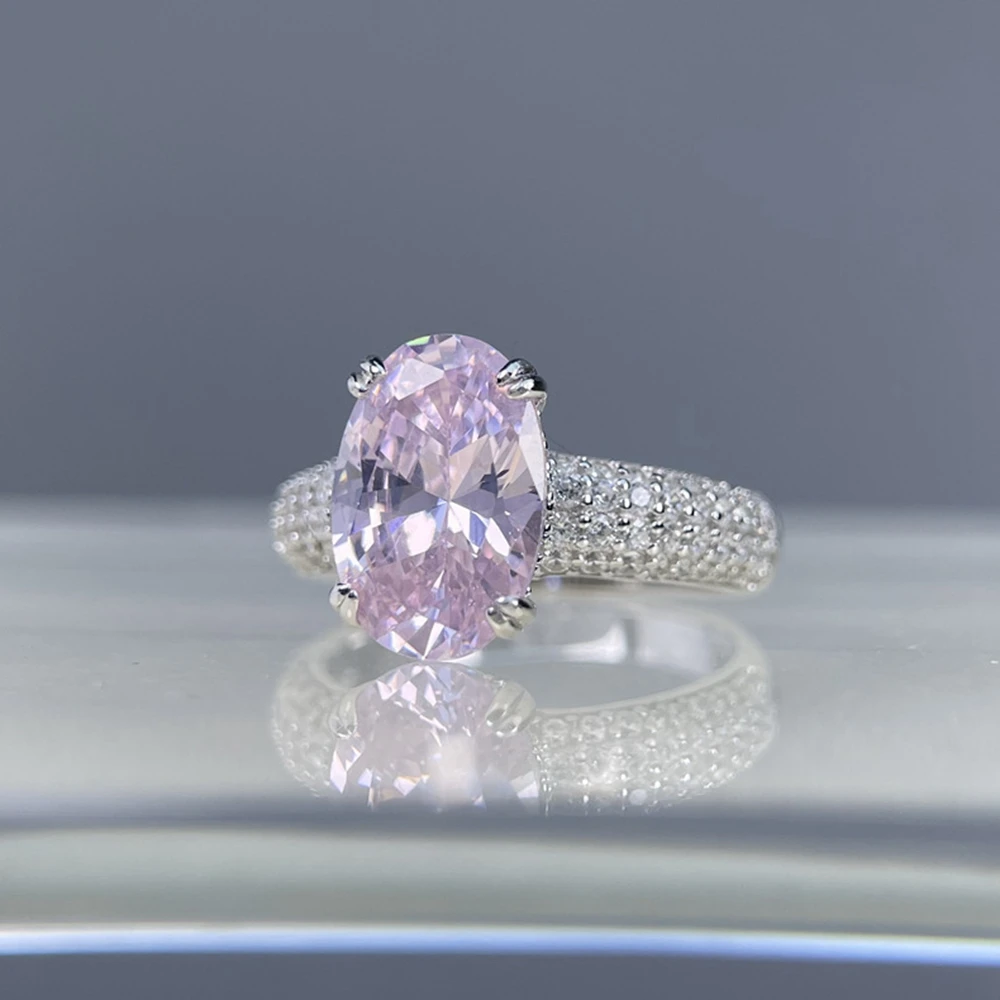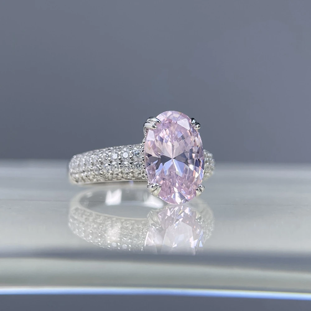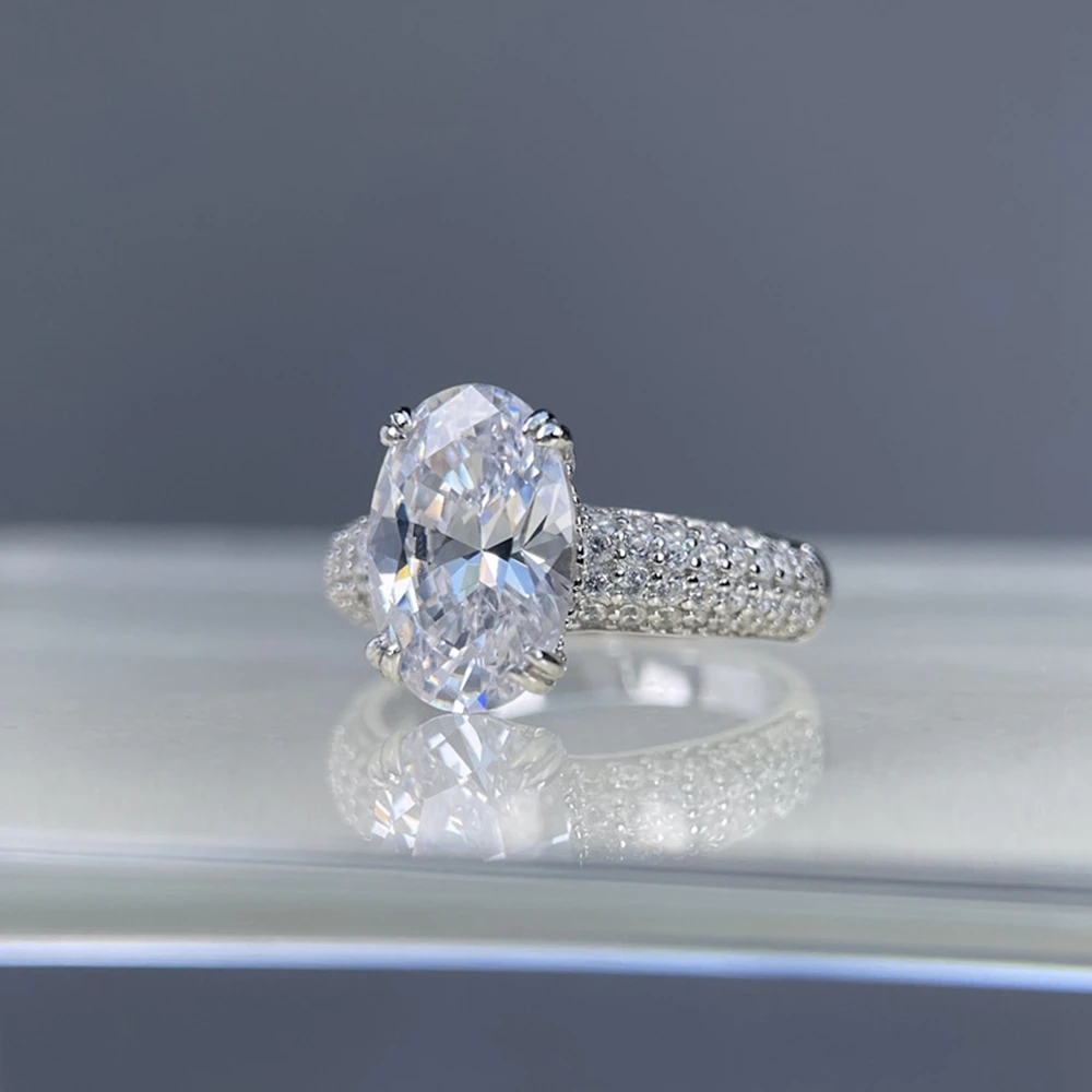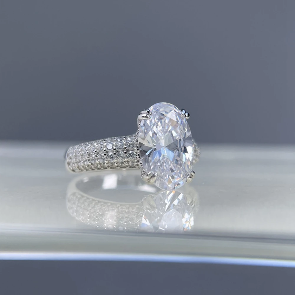 Wong Rain Solid 925 Sterling Silver Oval Cut 8*12 MM Lab Sapphire Citrine High Carbon Diamond Gem Ring for Women Wedding Engagement Fine Jewelry Gifts
