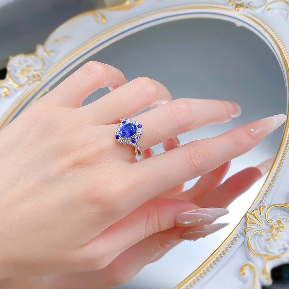 Wong Rain Classic 925 Sterling Silver Oval Cut 6*8 MM Sapphire High Carbon Diamond Gems Engagement Rings Fine Jewelry Wholesale