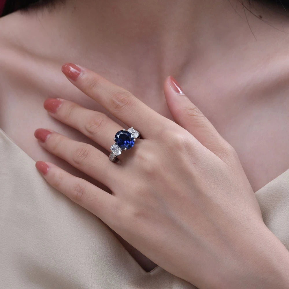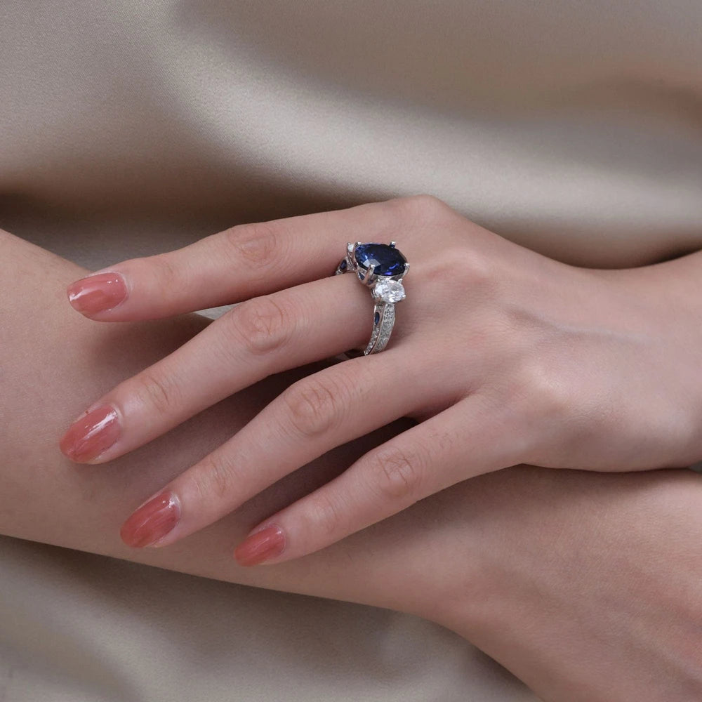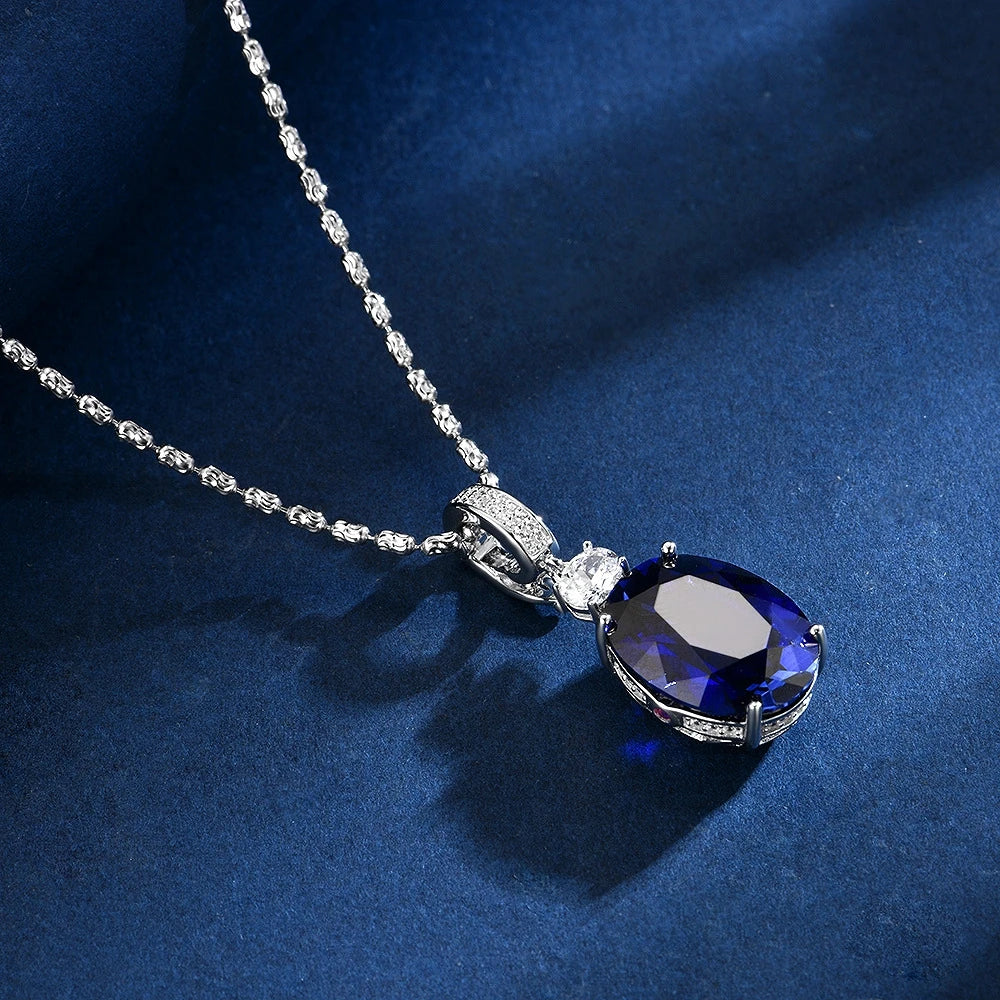Wong Rain Classic 925 Sterling Silver Oval Cut Sapphire High Carbon Diamond Gems Pendant/Necklace/Earrings/Rings Jewelry Sets