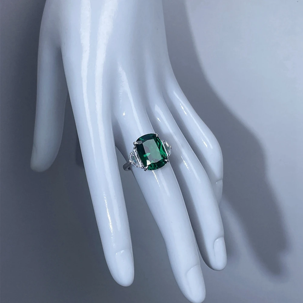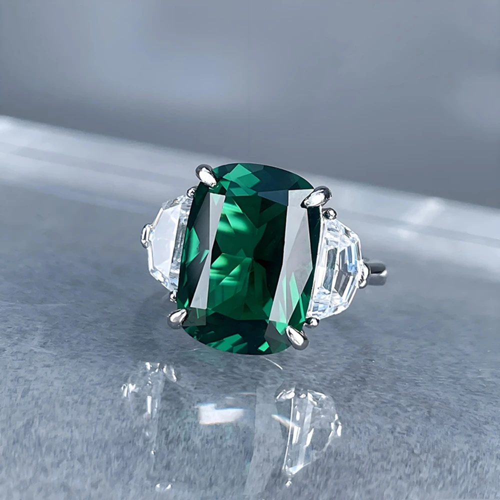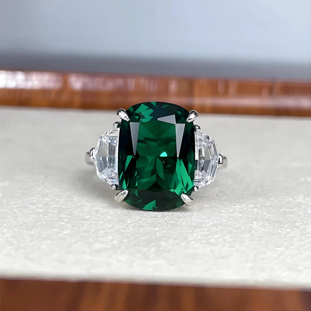 Wong Rain Vintage 925 Sterling Silver 10*14 MM Emerald High Carbon Diamonds Gems Ring for Women Fine Jewelry Anniversary Gifts