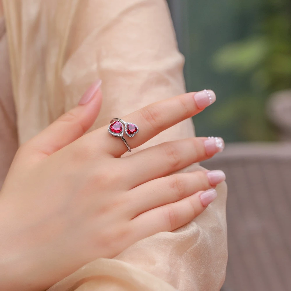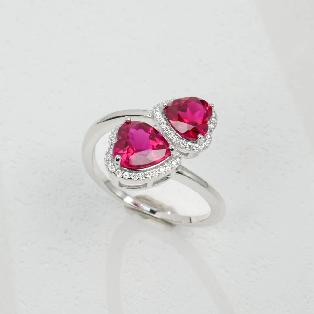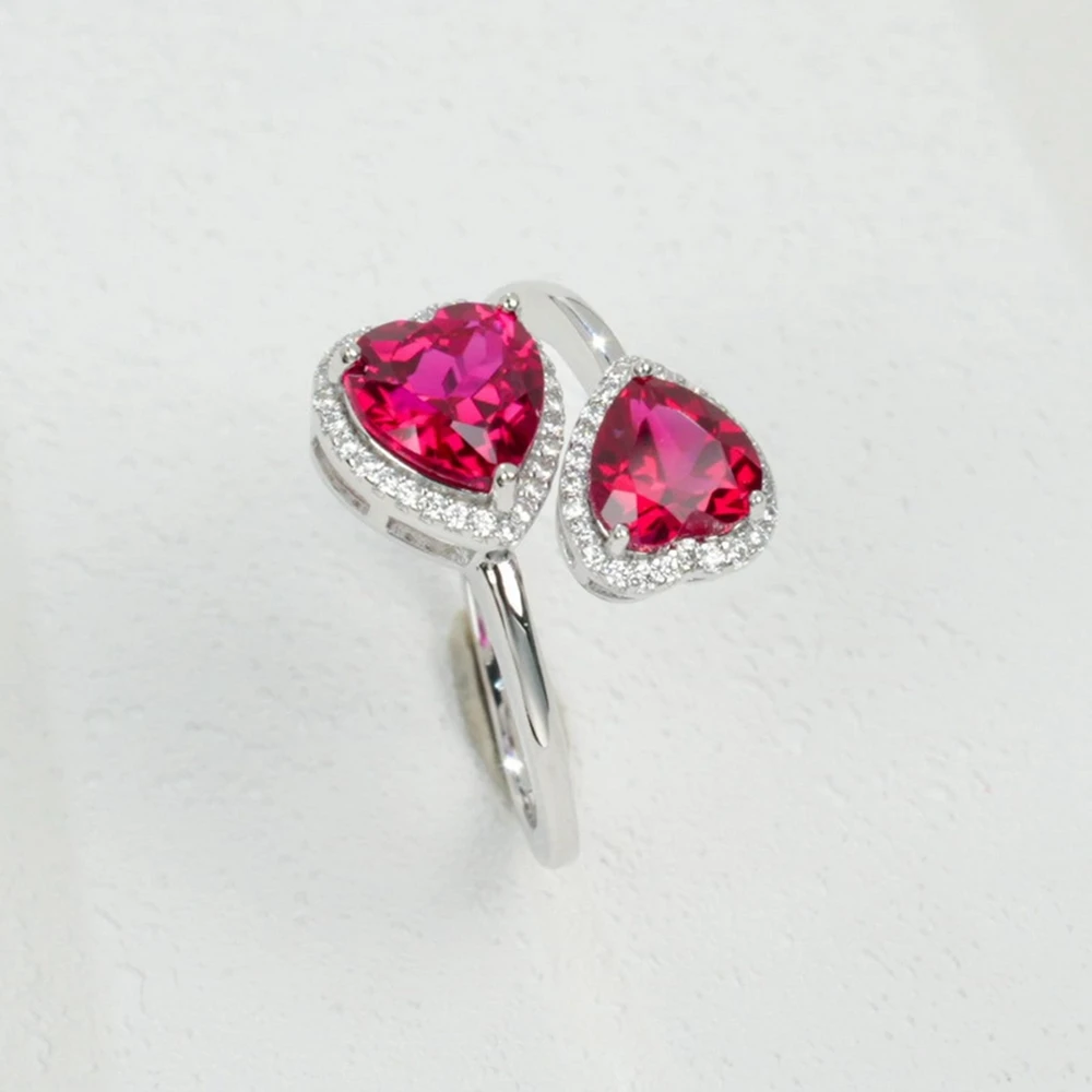 Wong Rain Vintage 925 Sterling Silver Heart Cut 6 MM Ruby High Carbon Diamond Gem Adjustable Ring for Women Party Fine Jewelry Wholesale