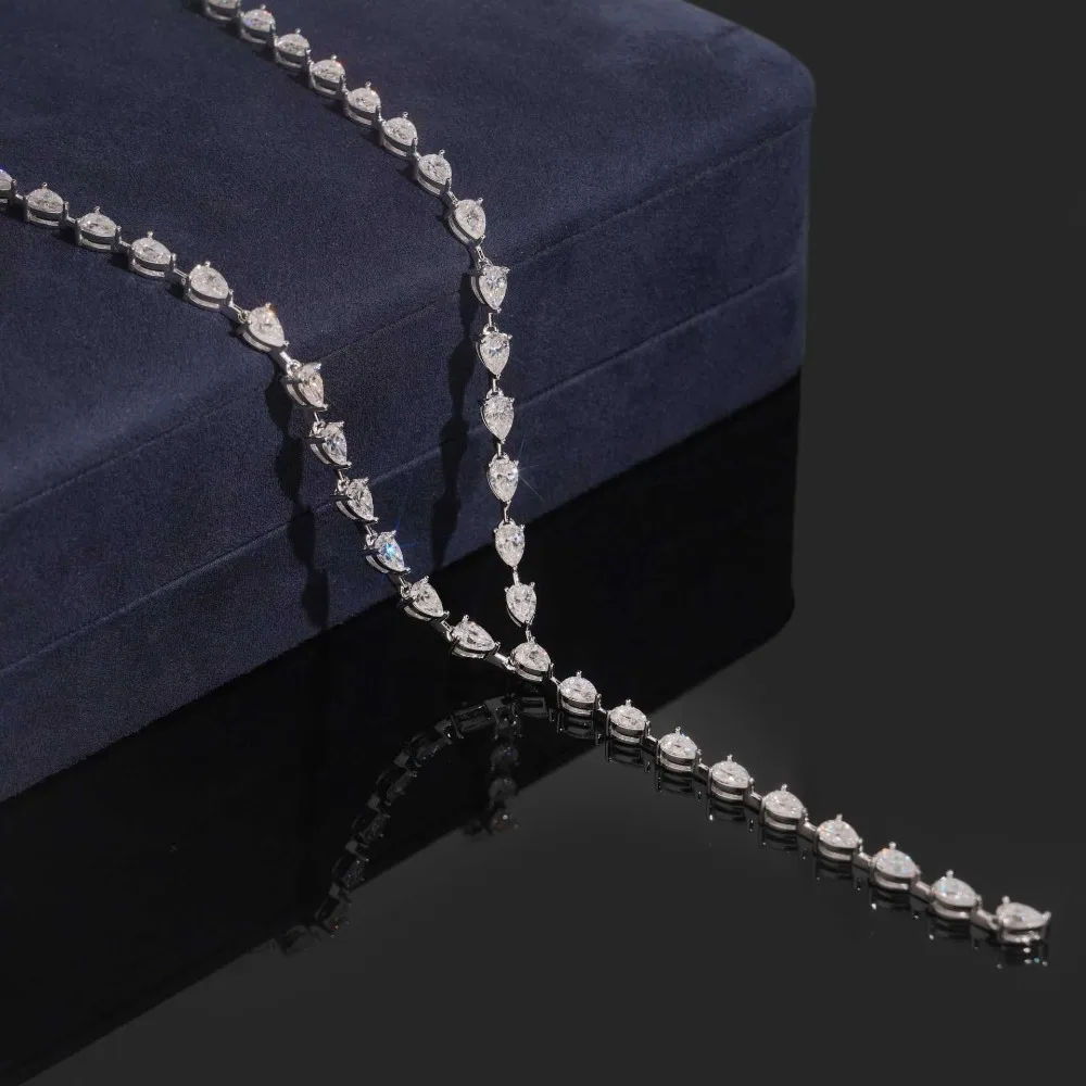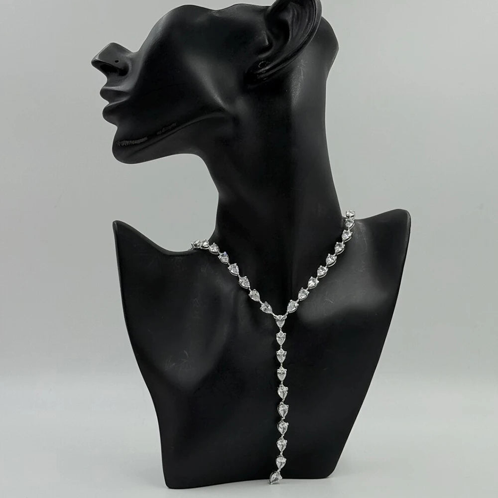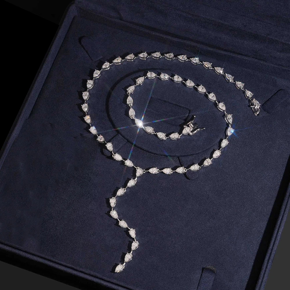 Y-Shape Waterdrop Moissanite Tennis Necklace for Women 0.5CT S925 Silver Pear Cut Diamond Long Tassel Bridal Riviera Necklaces