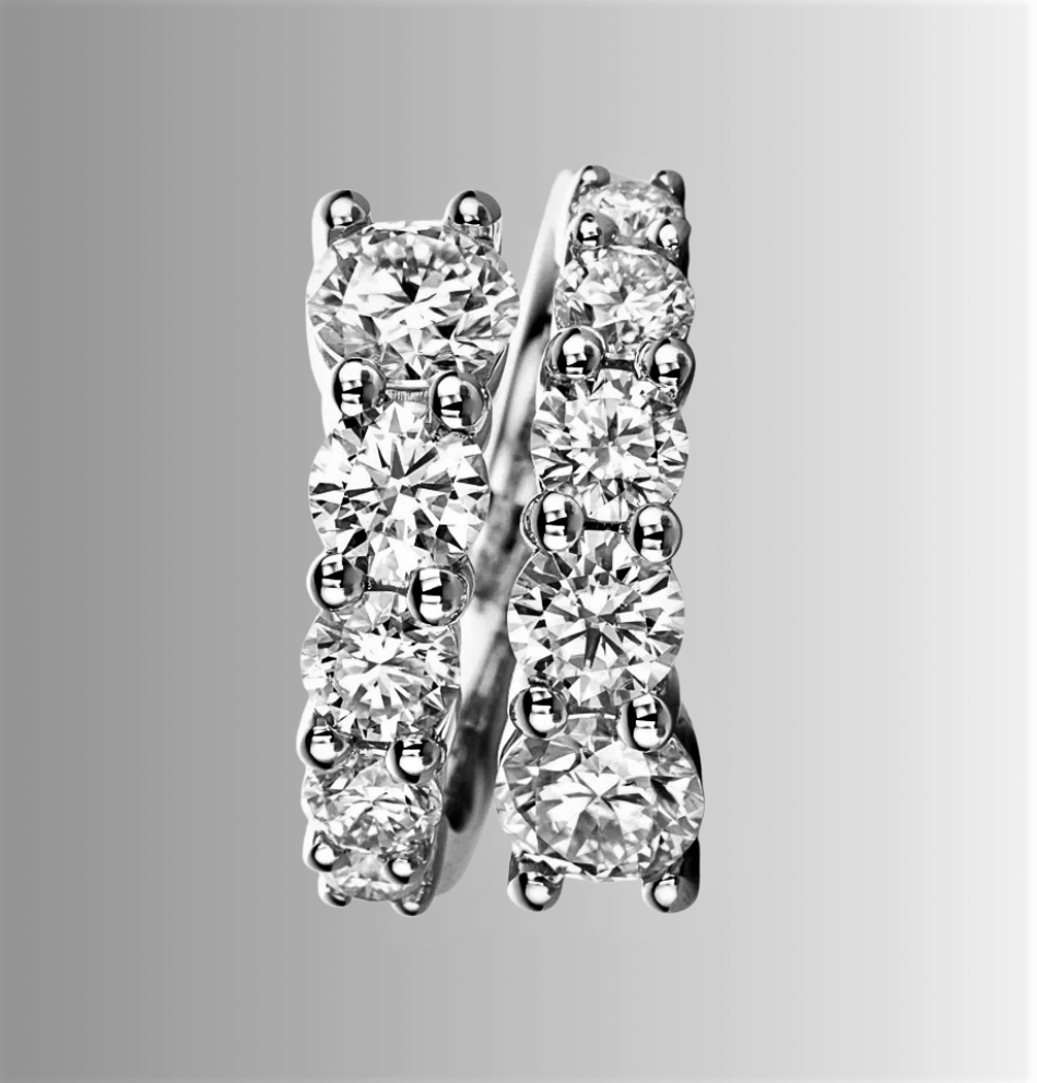 Questo gioiello è pensato per chi desidera un gioiello dal carattere definito ma raffinato, sobrio ma distintivo. La sequenza di brillantissime moissaniti crea un flusso continuo di luce che segue naturalmente la forma della mano, rendendo l’anello elegante e armonioso. La struttura aperta lascia respirare il design, evitando qualsiasi senso di pesantezza, e conferisce una presenza discreta ma ben riconoscibile. È un modello che coniuga equilibrio e raffinatezza, ideale per chi apprezza dettagli luminosi e puliti, capaci di completare il look con stile senza bisogno di eccessi. Le dieci moissaniti D Color VVS1, da 3 a 6 mm, sono incastonate con un sistema a punta singola che blocca due pietre affiancate, garantendo continuità e uniformità nella luce. Ogni gemma è certificata GRA, assicurando qualità e trasparenza, mentre la disposizione a scalare amplifica l’effetto luminoso lungo il dito.