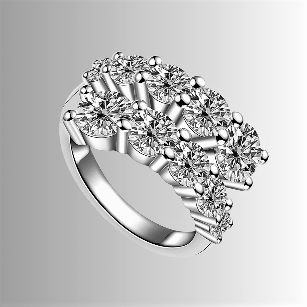 Realizzato completamente a mano da orafi esperti in lega d’argento Sterling 925 con doppia placcatura in oro bianco e rodio, l’anello offre brillantezza duratura, comfort ottimale e protezione della superficie. La qualità dei materiali garantisce un gioiello affidabile, da indossare con sicurezza ogni giorno o in occasioni speciali.