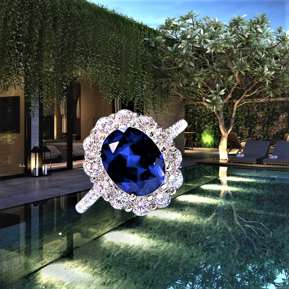 - Zafiro sintético central : En el corazón del anillo brilla un zafiro sintético ovalado de 9 x 7 mm , elegido por su intenso color y brillo que recuerda las profundidades de un océano encantado. Esta piedra preciosa con alto contenido de carbono imita la perfección de los zafiros naturales, convirtiéndola en una verdadera obra maestra de luz y color.