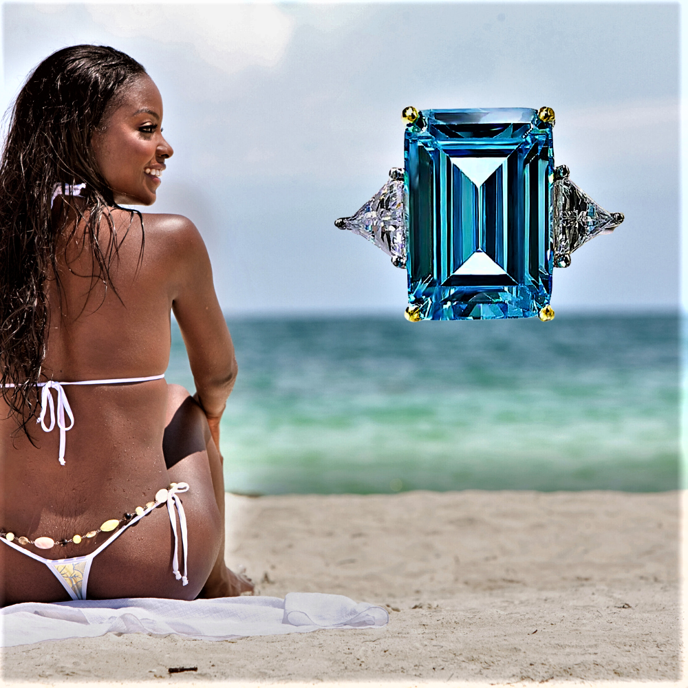 El anillo “Trittico Marino” presenta una espléndida piedra central en Aguamarina sintética de color azul intenso con corte Esmeralda, flanqueada por dos brillantes diamantes sintéticos de corte triangular y montada en un anillo creado en Aleación de Plata de Ley 925 con Triple Baño en Oro Blanco de 18 quilates . Esta combinación no sólo crea un fascinante juego de colores y formas sino que también realza el brillo y la pureza de las piedras .