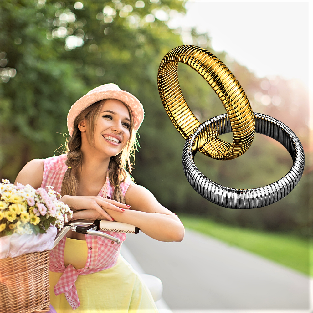 🎁 Adopta la Pulsera Bicolor “Canna del Gas” Estilo Bulgari y déjate inspirar por el arte orfebre italiano, llevando contigo una pieza de la historia del diseño que combina la elegancia atemporal con materiales innovadores.