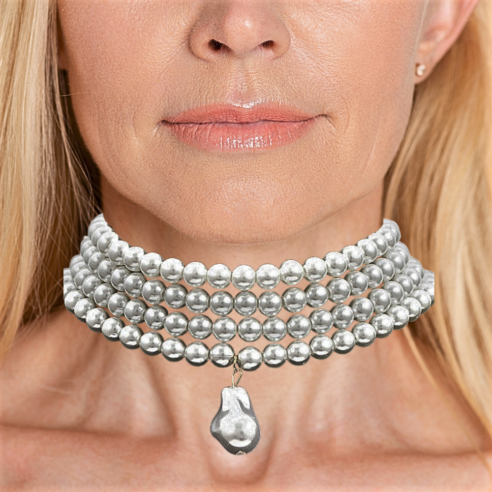 - Cuatro hebras de perlas : el collar está hecho de cuatro hebras de perlas blancas naturales , ensartadas en seda, lo que garantiza un ajuste cómodo y una apariencia lujosa.
