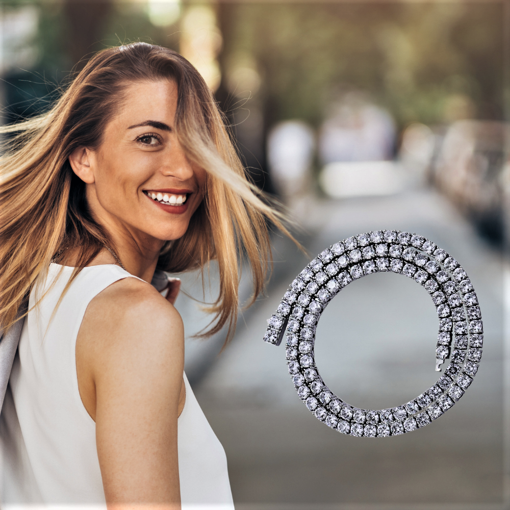 El nombre "Tennis Necklace" proviene de un episodio ocurrido durante el US Open de 1987 , cuando la campeona Chris Evert perdió su brazalete de diamantes en la cancha e interrumpió el partido para recuperarlo. A partir de ese momento, ya fuera una pulsera o un collar, cada joya formada por una hilera de engastes de piedras pasó a llamarse “Tennis” , convirtiéndose en un símbolo eterno de elegancia deportiva y glamour.
