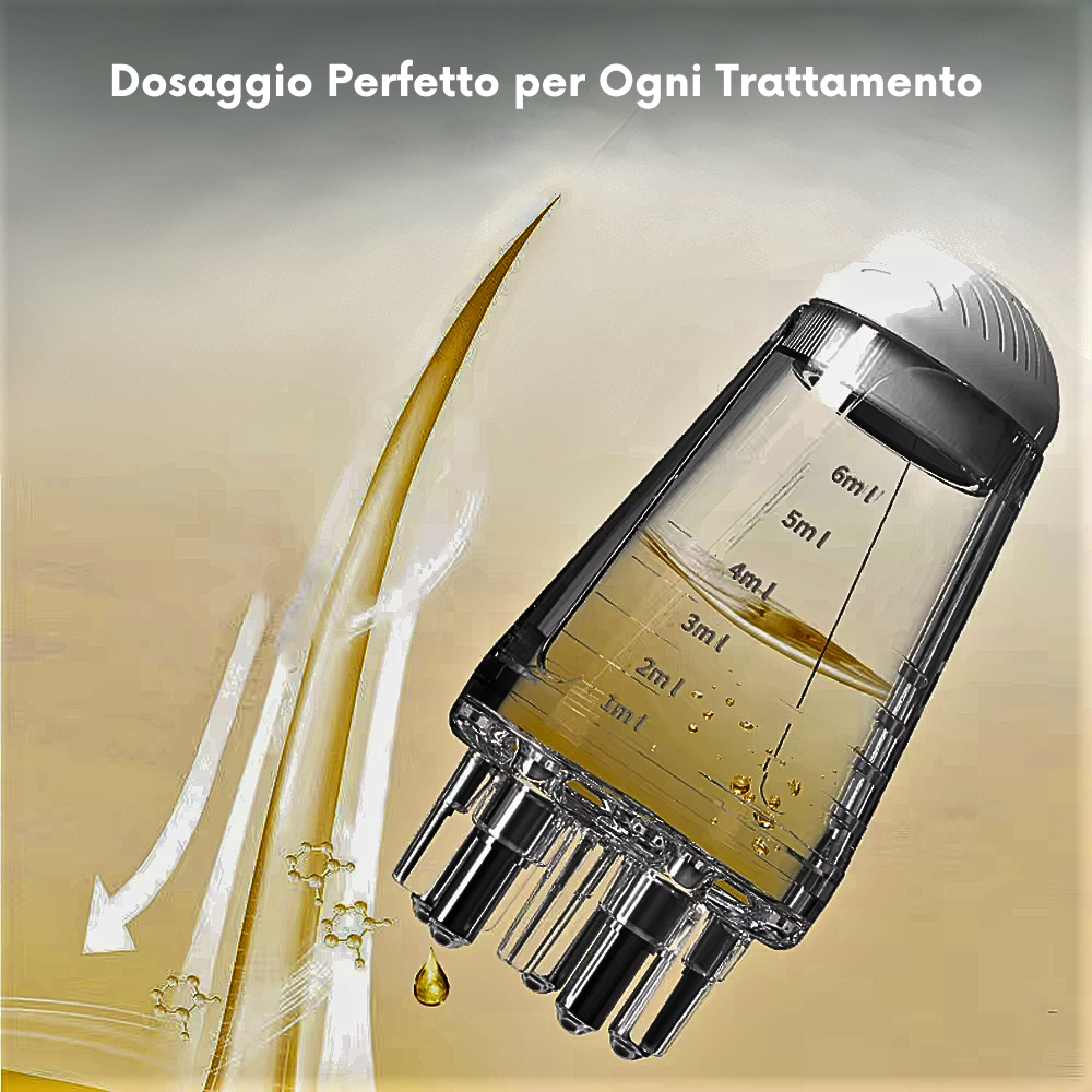 - Masaje del cuero cabelludo : Los 6 dientes de masaje promueven la absorción de aceite y estimulan la circulación sanguínea, mejorando la salud general del cuero cabelludo.