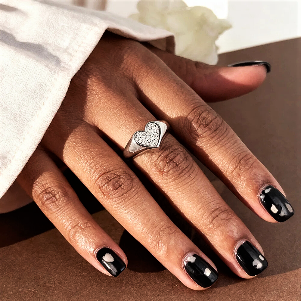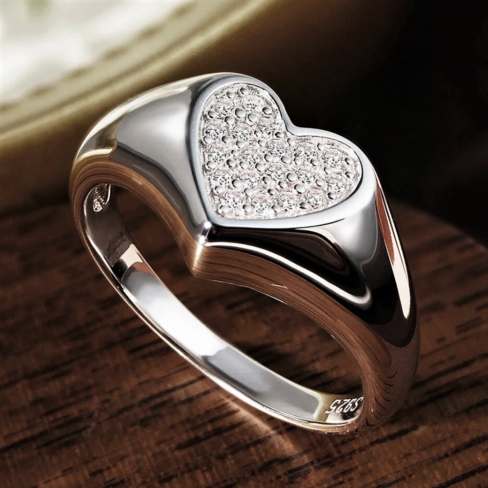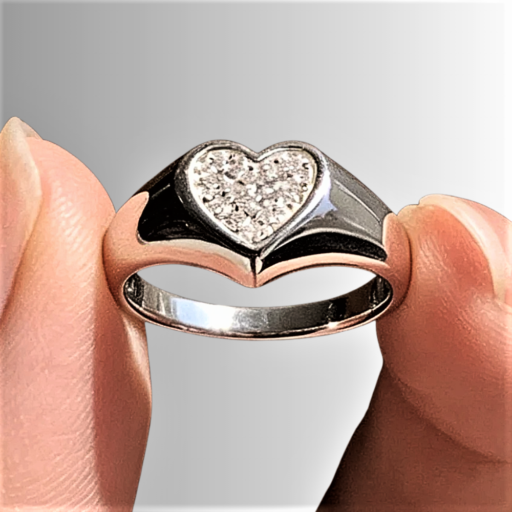 Questa fascetta nasce da un’idea chiara e misurata: ridurre la forma all’essenziale per lasciare spazio alla luce. Il cuore centrale non è un elemento decorativo eccessivo, ma una presenza pulita e ben definita, pensata per distinguersi attraverso proporzioni corrette e brillantezza controllata. Il cuore, leggermente rialzato rispetto alla fascia, è interamente ricoperto da 19 moissaniti D color taglio brillante, selezionate per uniformità visiva e purezza. L’incassatura precisa crea una superficie compatta e continua, senza interruzioni, capace di riflettere la luce in modo ordinato e regolare.