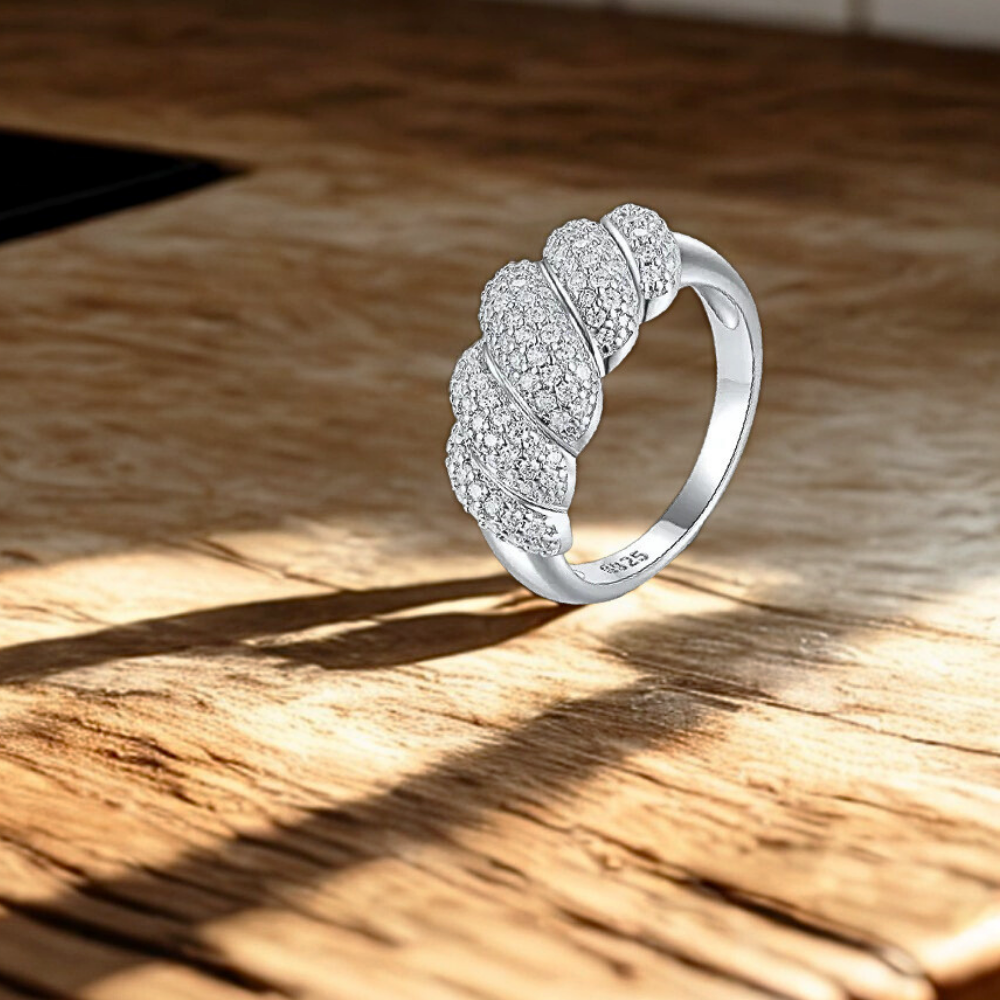 Un anello pensato per esaltare la luce in maniera equilibrata e naturale, studiato per rifletterla da ogni angolazione grazie al design a cinque fasce oblique. Ogni fascio cattura i riflessi con precisione, creando un gioco di luci uniforme e armonioso, che valorizza la mano senza appesantire la forma. La struttura bombata conferisce al gioiello un profilo deciso ma elegante, mentre le proporzioni calibrate assicurano un equilibrio visivo piacevole e una vestibilitĂ confortevole. Questo design permette alla luce di muoversi lungo la superficie in modo fluido, donando al gioiello profonditĂ e dinamismo, senza perdere la sobrietĂ e la raffinatezza tipiche di un modello studiato per durare nel tempo.