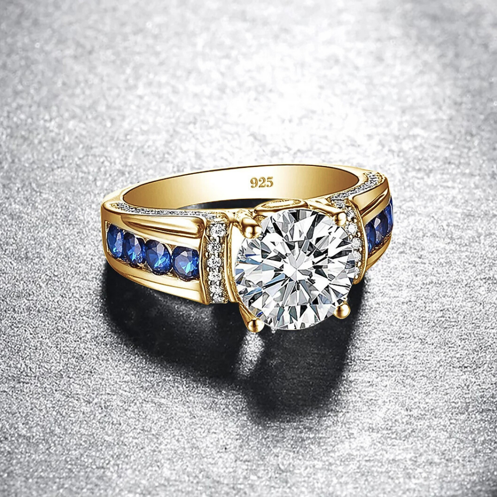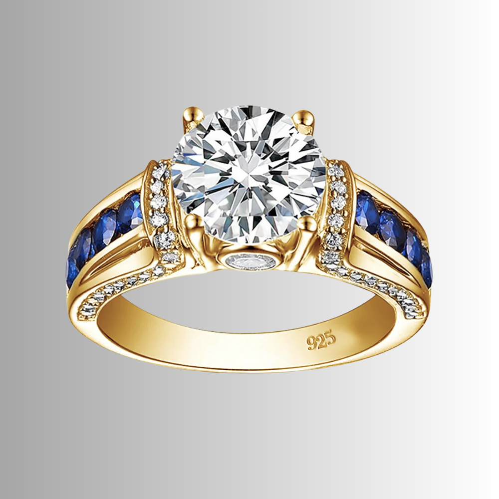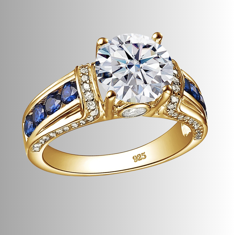 Realizzato in Argento Sterling 925, l’anello è rifinito con doppia placcatura in oro 18 carati e trattamento finale al rodio, per garantire durata, comfort e una lucentezza stabile nel tempo. La precisa e sapiente lavorazione a mano segue una simmetria precisa: micro moissaniti bianche calibrate lungo i bordi e i profili laterali creano un effetto a corona che amplifica la luce senza appesantire la forma.