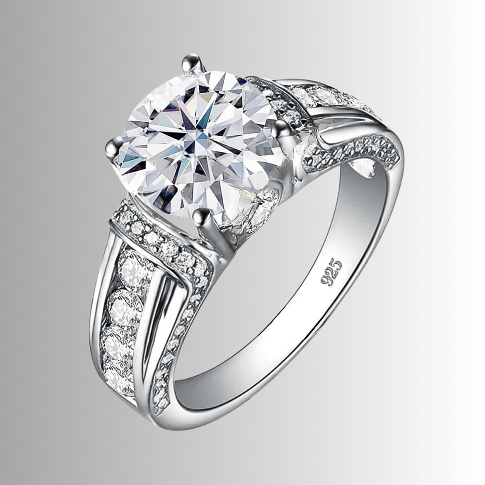 Una fascia dal carattere deciso ma armonioso, pensata per chi desidera un gioiello contemporaneo capace di esprimere luce, precisione e consapevolezza. La presenza della pietra centrale da 2,00 carati non domina la scena, ma dialoga con la struttura creando una continuità visiva elegante e ben calibrata, ideale per chi ama il lusso essenziale e sostenibile. L’anello è interamente impreziosito da moissaniti D color con purezza VVS1, selezionate per offrire riflessi intensi e un fuoco vivace. La pietra centrale certificata GRA, con taglio rotondo, è sostenuta da quattro griffe sottili che permettono alla luce di attraversarla liberamente, esaltandone trasparenza e scintillio naturale.