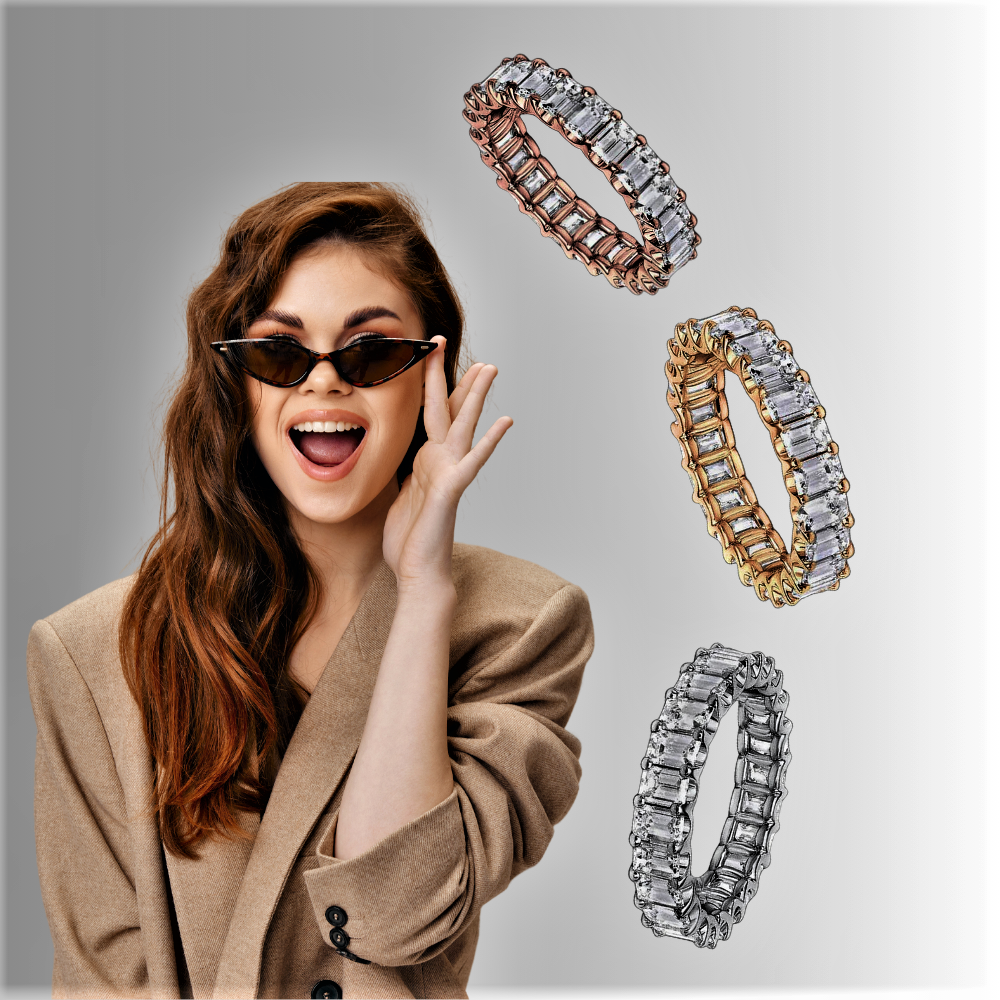 En el corazón del diseño, encontrará hermosas piedras de circonita de alta calidad cortadas en baguette (rectangulares) de 4 mm de largo y 3 mm de ancho , dispuestas en perfecto paralelismo. La peculiaridad de esta joya reside en el sistema de engaste: una única punta, casi invisible, sujeta dos piedras , creando un Efecto visual de continuidad y brillo como si fueran una única gran piedra . Un precioso homenaje a la gran elegancia y artesanía de la alta joyería. Cada detalle está diseñado para capturar la luz y reflejarla , haciendo de este anillo una pieza que no puede pasar desapercibida, un símbolo de lujo discreto pero absolutamente evidente.