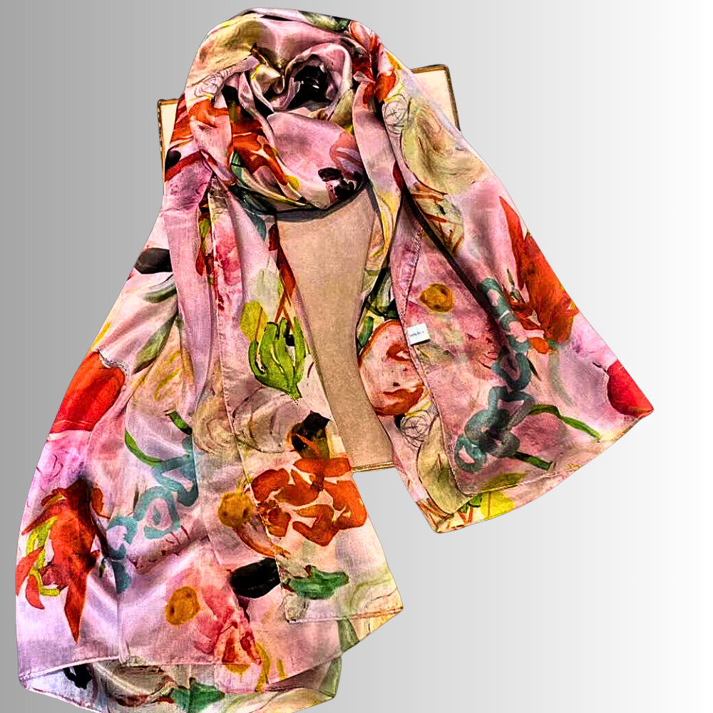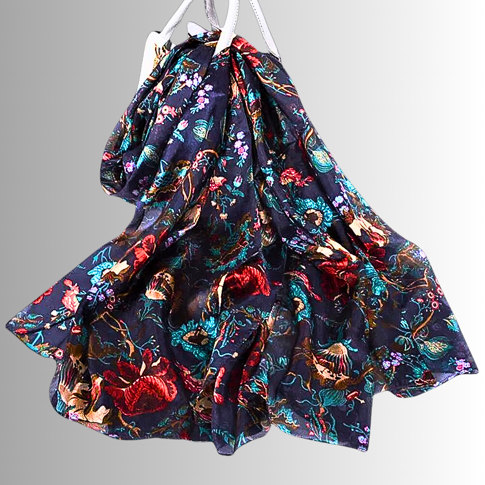 Disponible en 18 variaciones de color , cada una caracterizada por delicados motivos florales que realzan el encanto y la personalidad de quien la usa. Los estampados florales, ricos en detalles y colores vibrantes, hacen de esta bufanda un accesorio imprescindible para los amantes del estilo refinado .