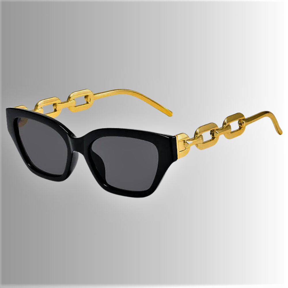 🕶️ Déjate seducir por las Gafas de Sol Cat Eye , el accesorio imprescindible para toda mujer que quiera brillar con elegancia y distinción. Estas gafas no son simples complementos, sino verdaderos símbolos de lujo y diseño, gracias a sus singulares patillas en forma de aros de cadena de metal dorado que las convierten en una obra maestra del estilo.