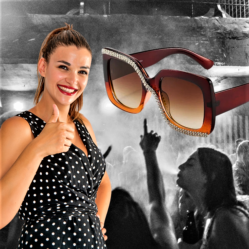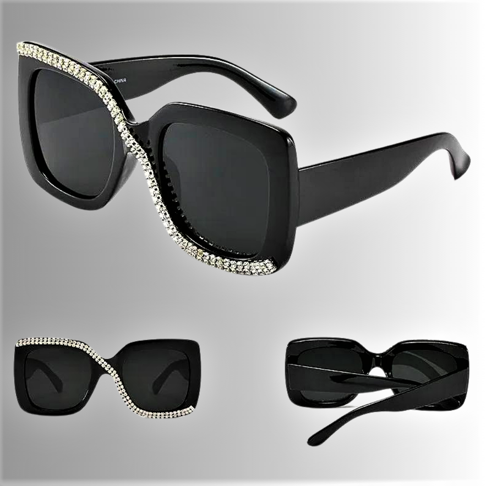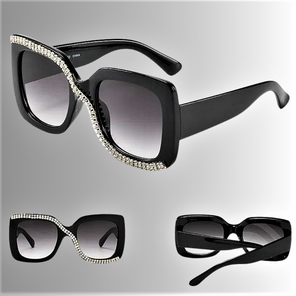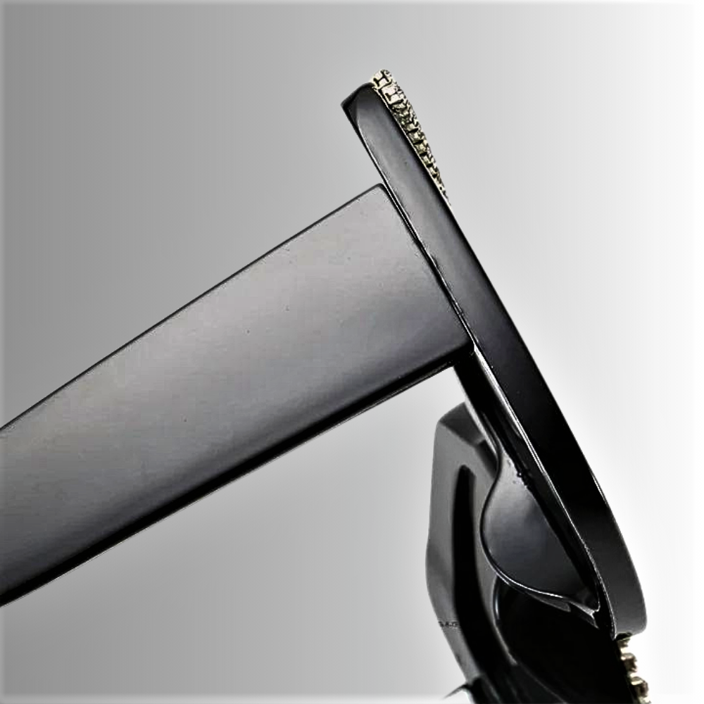 - Decoración llamativa de diamantes de imitación : una doble fila de diamantes de imitación se extiende de manera llamativa desde una esquina de las lentes a la otra, agregando un toque de encanto y elegancia únicos.