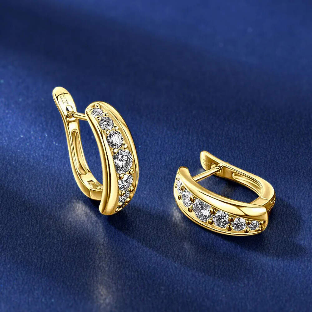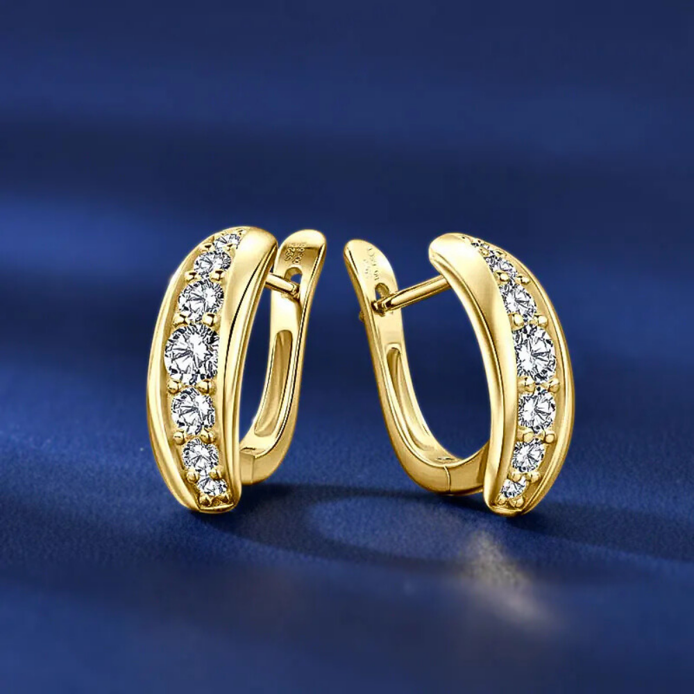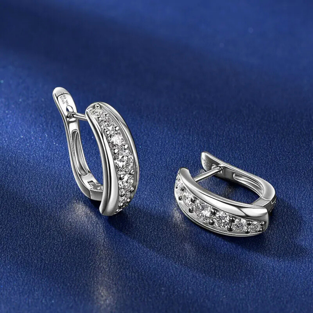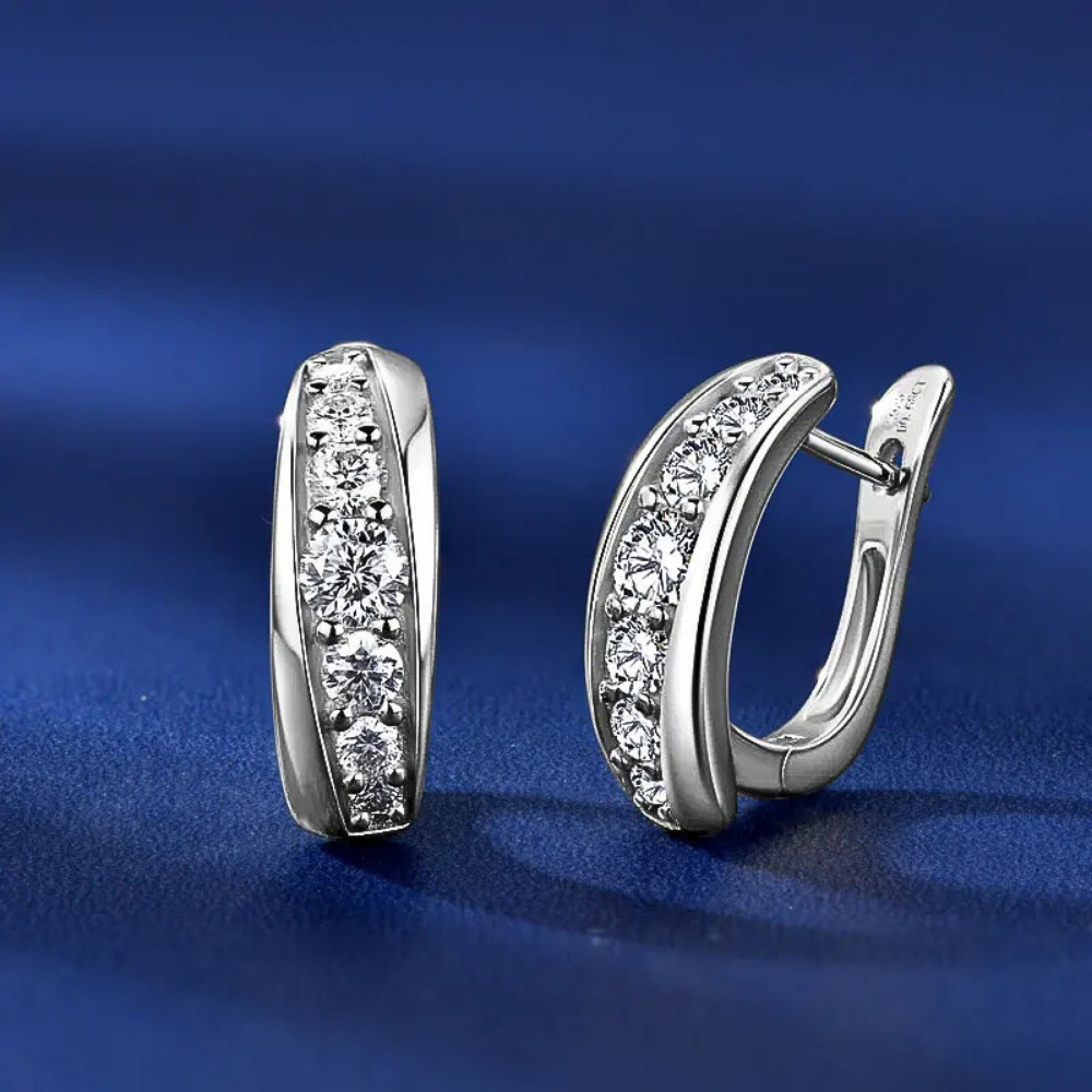 A rendere questi orecchini particolarmente originali è l’orientamento della striscia di moissaniti, che non segue perfettamente la linea del cavallotto ma si dispone leggermente in diagonale. Questa scelta progettuale introduce un movimento visivo elegante e moderno, trasformando un modello classico in un gioiello ricercato e contemporaneo.