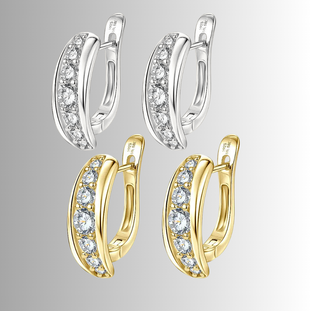 Gli orecchini sono realizzati a mano in Argento Sterling 925 e proposti con tripla placcatura in oro bianco con finitura in rodio oppure in oro giallo 18 carati. Le diverse tonalità permettono di scegliere la variante più adatta al proprio stile, esaltando la luminosità delle pietre e la purezza delle linee.