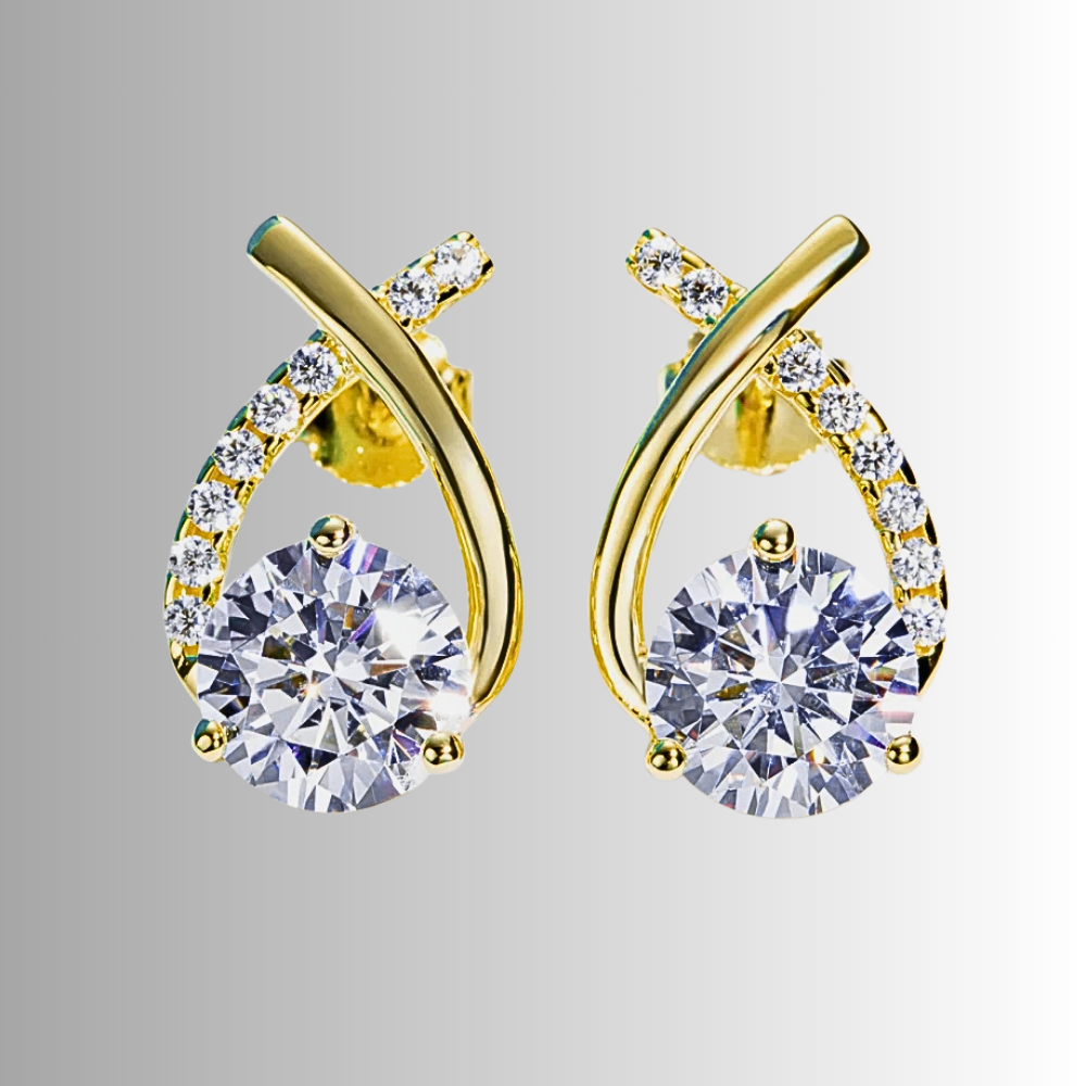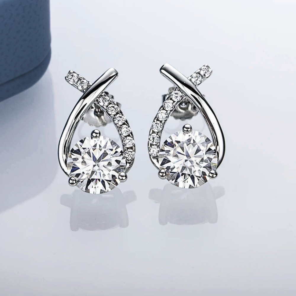 Al centro della struttura trova spazio una moissanite tonda da circa 8 mm, pari a circa 2,00 carati per orecchino. La pietra è incastonata con tre punte sottili che permettono alla luce di raggiungere la gemma da più angolazioni, valorizzando l’elevato indice di rifrazione tipico della moissanite. La purezza D color e la certificazione GRA garantiscono una qualità elevata e una brillantezza intensa, capace di creare riflessi chiari e ben definiti.