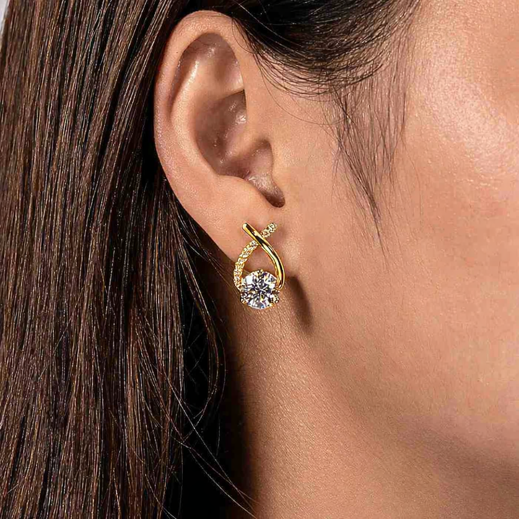 È un gioiello pensato per chi ama forme contemporanee e proporzioni equilibrate, dove la brillantezza delle moissaniti emerge con naturalezza senza bisogno di decorazioni superflue. Un accessorio che valorizza il viso con eleganza moderna e carattere discreto.