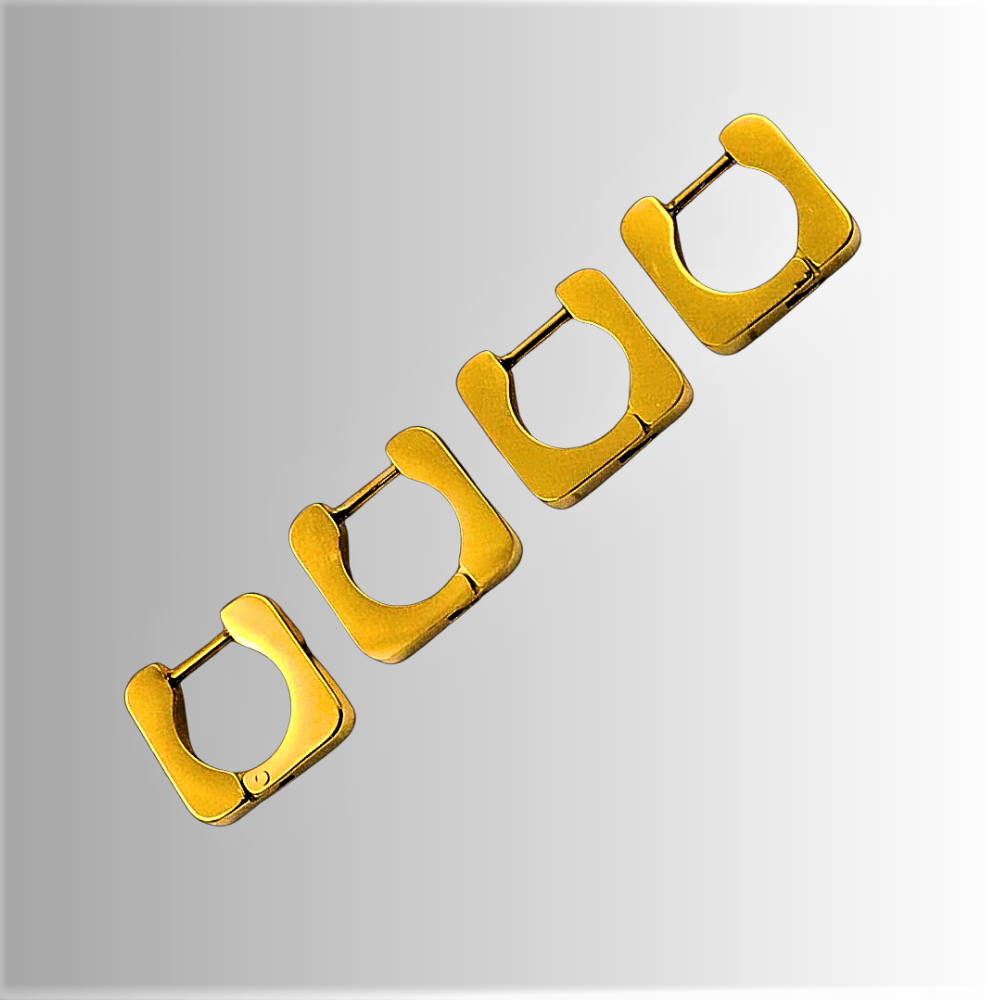 Fabricados en acero inoxidable y bañados en oro amarillo de 18 quilates , estos pendientes presentan una forma cuadrada geométrica que añade un toque de sofisticación a tu estilo. El acabado galvanizado garantiza un brillo duradero, mientras que el diseño minimalista capta la atención sin ser dominante. El innovador cierre con bisagra ofrece seguridad y comodidad durante el uso, lo que hace que estos pendientes sean perfectos para usar durante todo el día gracias a su peso liviano de solo 4 gramos .
