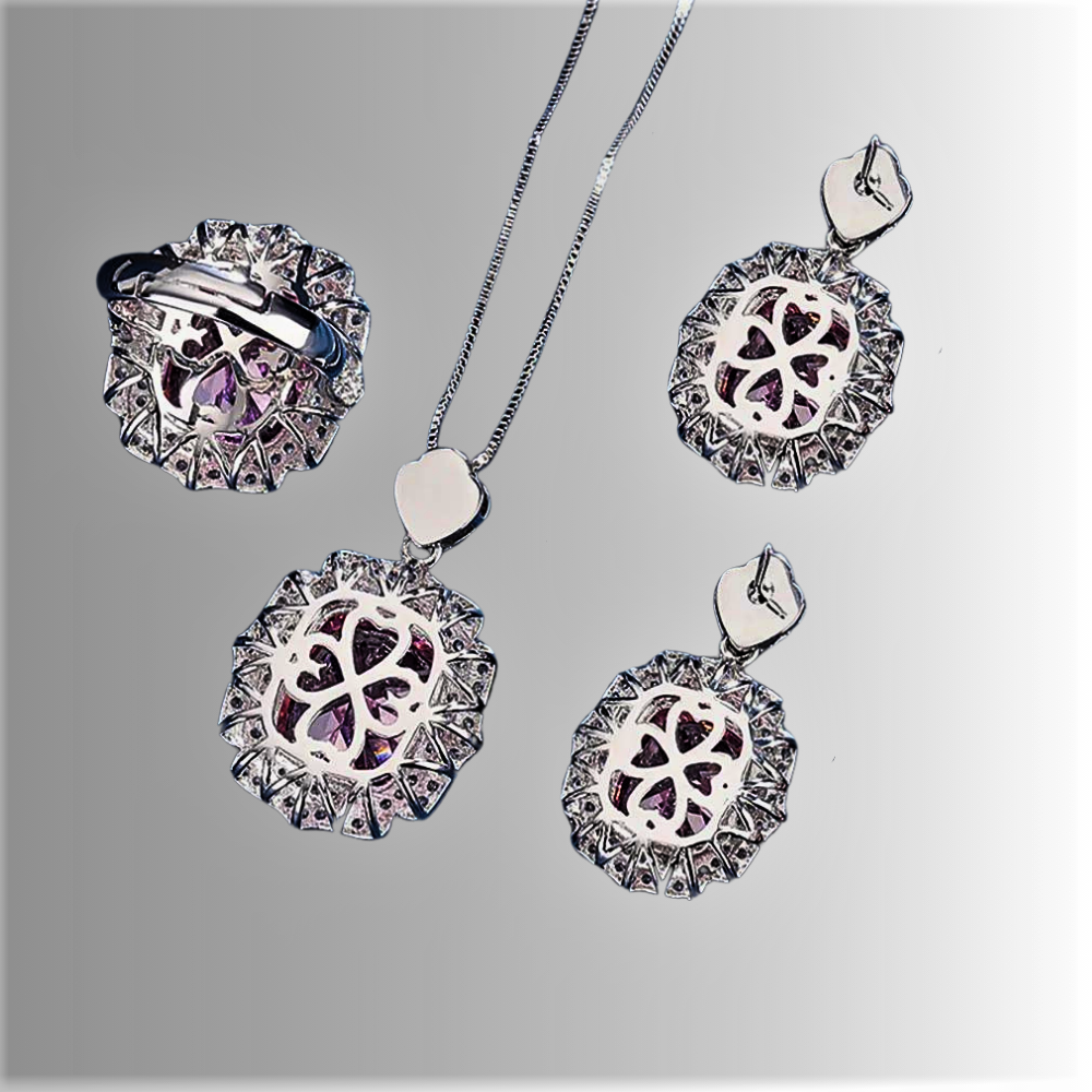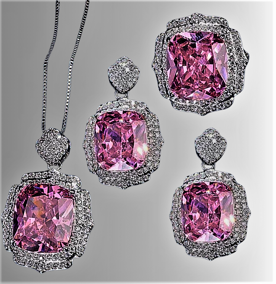 💖 De la reconocida Colección “Charm and Luxury” de GlamLuxe, el conjunto “Araldo Rosa” destaca por su sofisticación y extraordinario brillo. Este conjunto completo, que incluye collar, anillo y pendientes, está adornado con diamantes sintéticos rosas de talla Asscher , enmarcados por dos filas de diamantes sintéticos blancos de talla brillante de impecable calidad y brillo extremo. 💥
