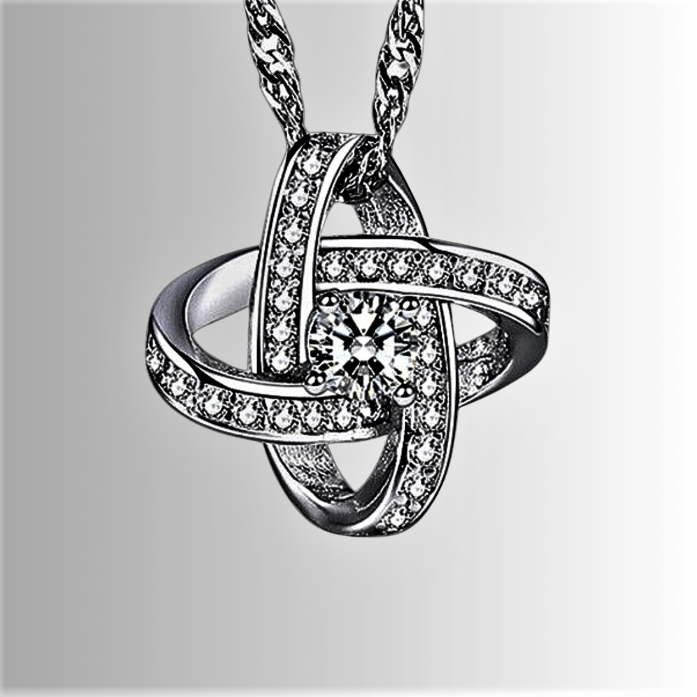 - Dimensiones del colgante : Con un colgante central de 15 mm x 15 mm , este collar presenta dos elipses elegantemente incrustadas con circonita cúbica blanca de primera calidad , dispuestas para crear una forma de cruz , con un engaste de 4 puntas en el centro que encierra una impresionante circonita cúbica.
