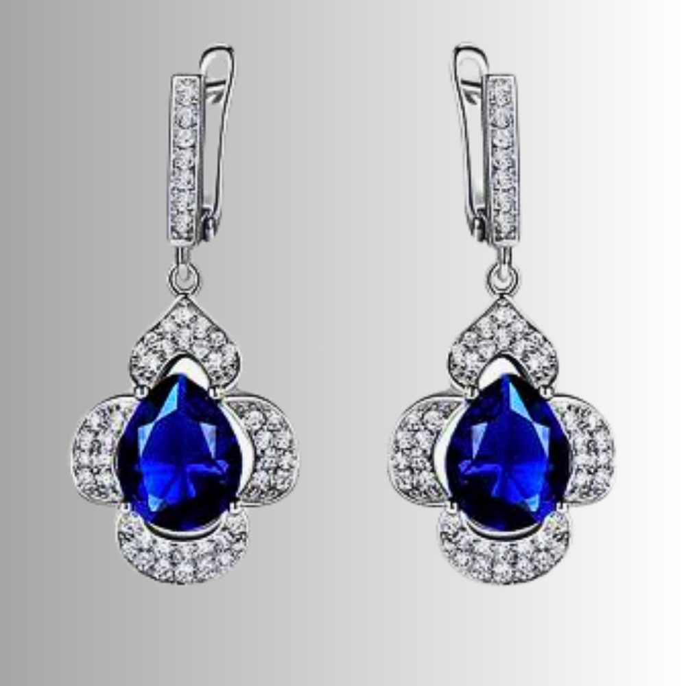 - Collar colgante : El punto focal de este conjunto es un delicado collar de malla veneciana de 45 cm que culmina en un colgante, donde el zafiro sintético de talla pera brilla intensamente en el centro, ofreciendo un toque de opulencia.
