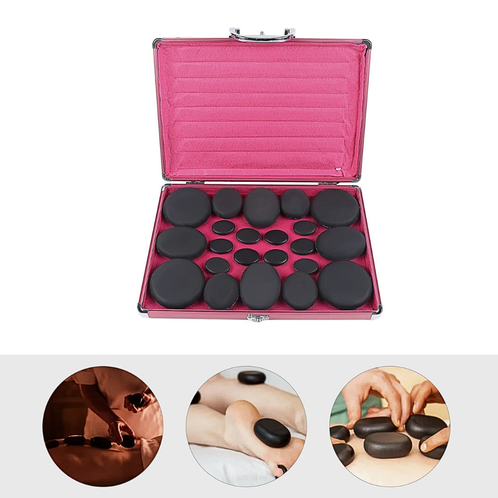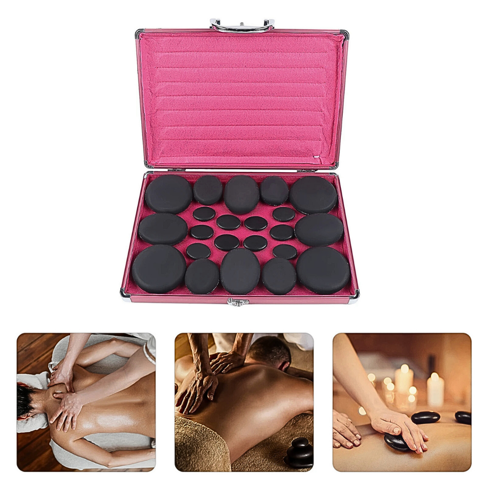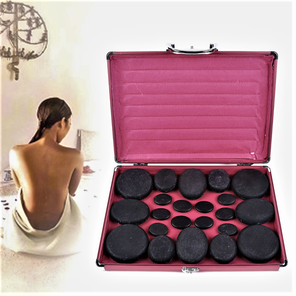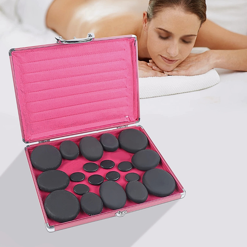 - Prima dell'uso: Riscalda le pietre nella valigetta riscaldante (circa 20-30 minuti per raggiungere 60-70°C). Lava le pietre e applica oli essenziali su di esse.